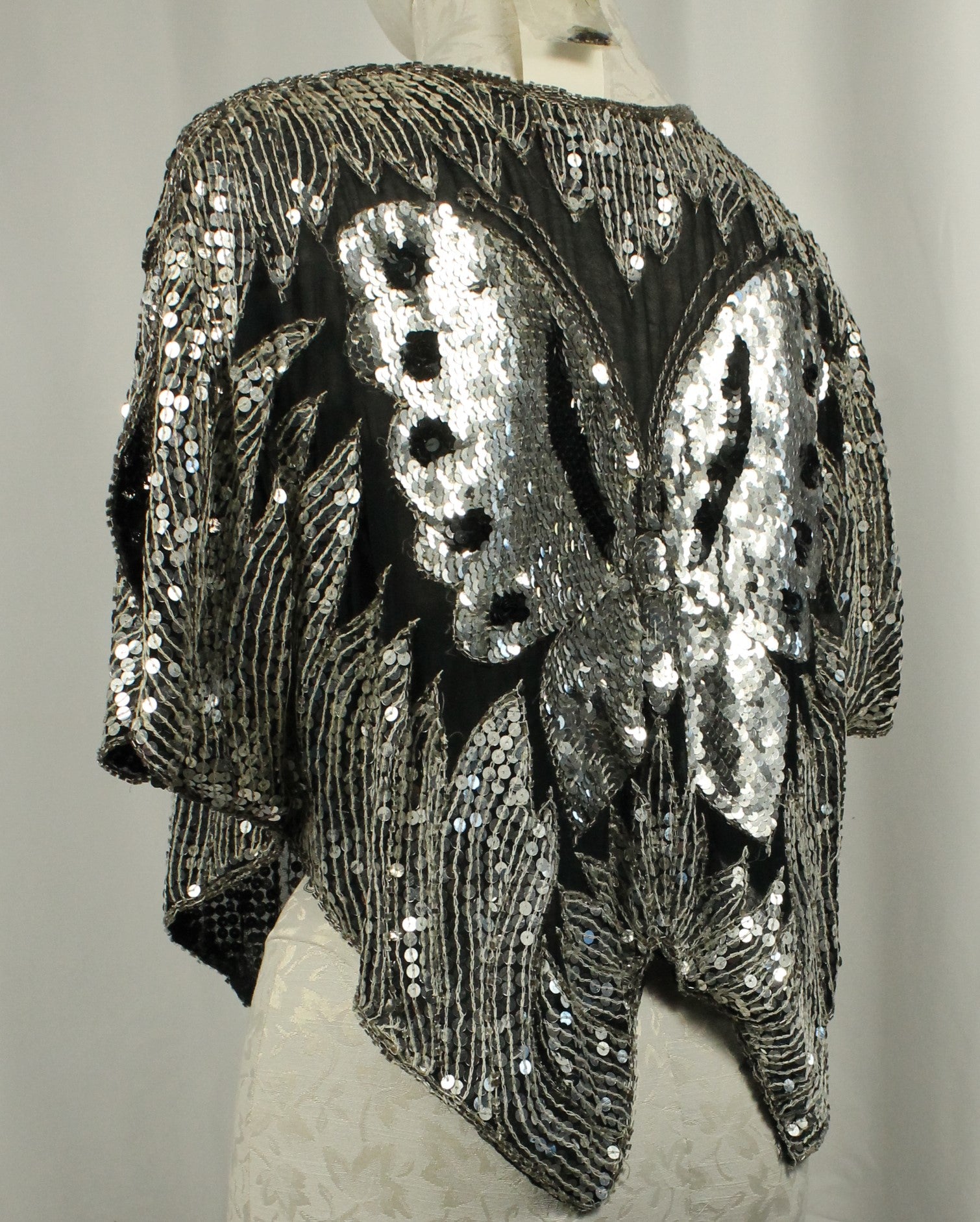 Vintage Sequin Butterfly Top – Dazzling Statement Piece Size Small