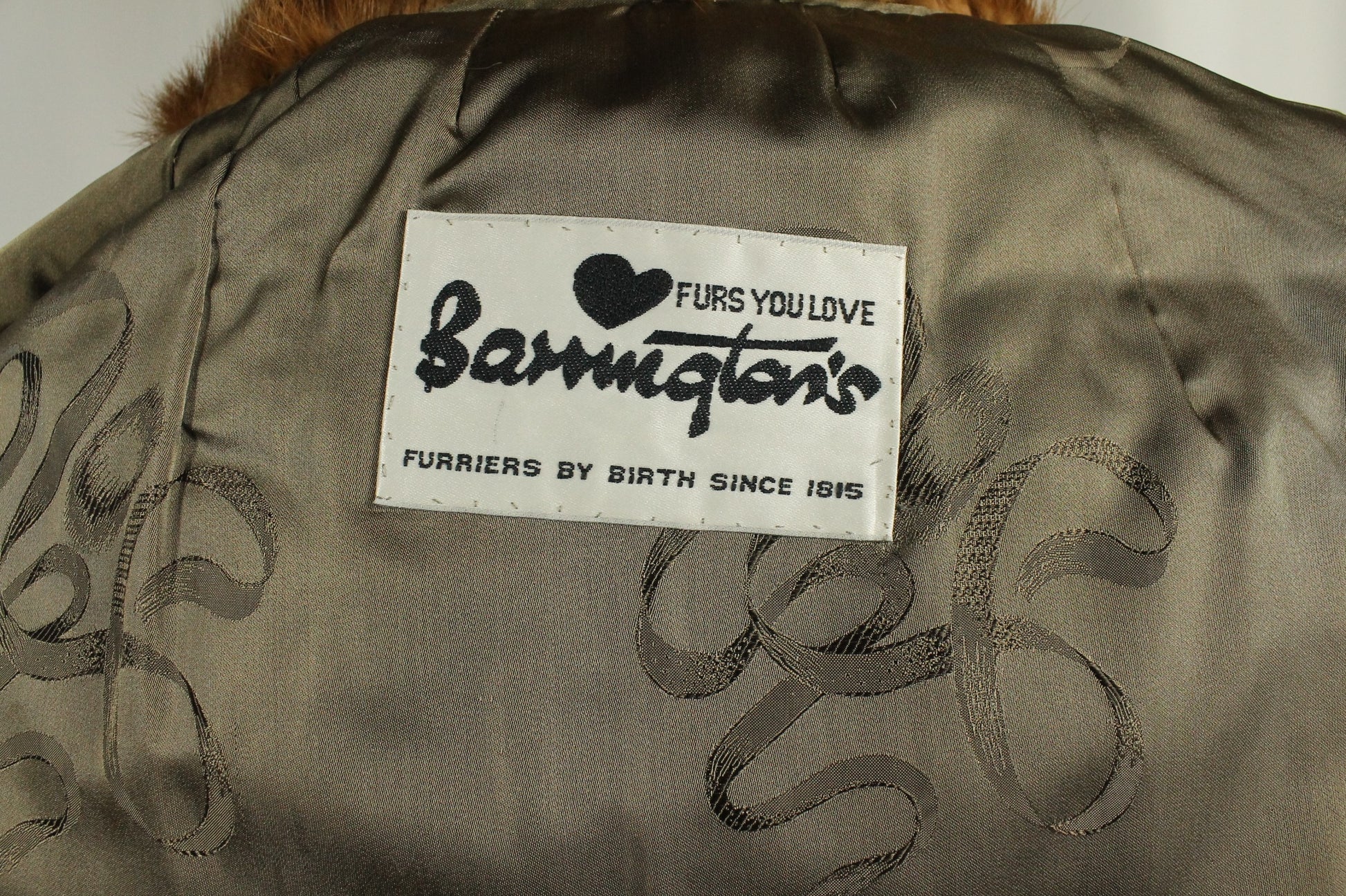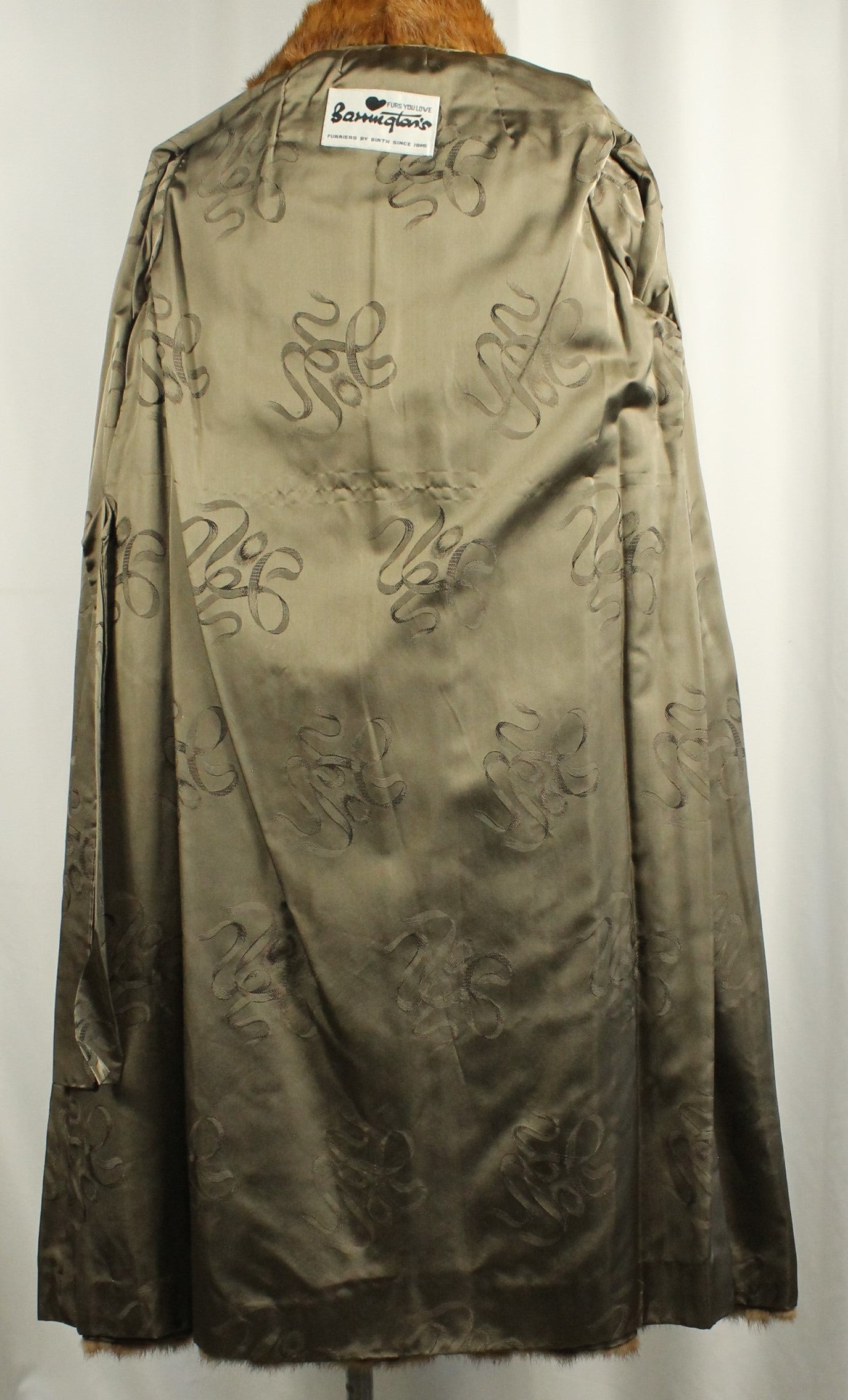 A stunning example of vintage luxury, this fur coat has a deep russet hue with reddish undertones. Crafted by Barrington's, the vertically arranged pelts are likely natural mink. This full-length coat is in excellent vintage condition and does not appear to have ever been worn.