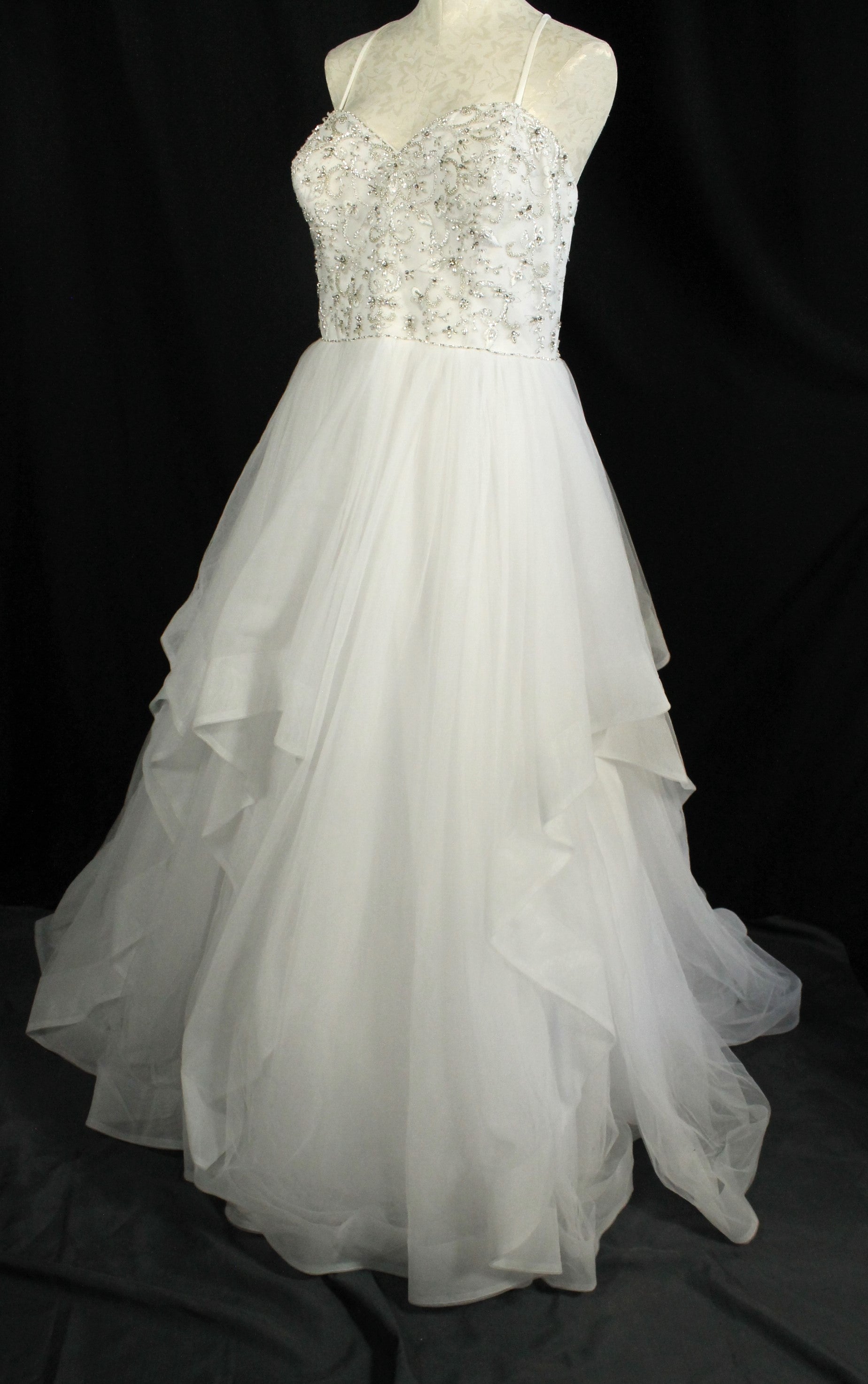 Elegant Alfred Angelo Wedding Dress – Size 22W, Beaded Bodice & Tulle Skirt
