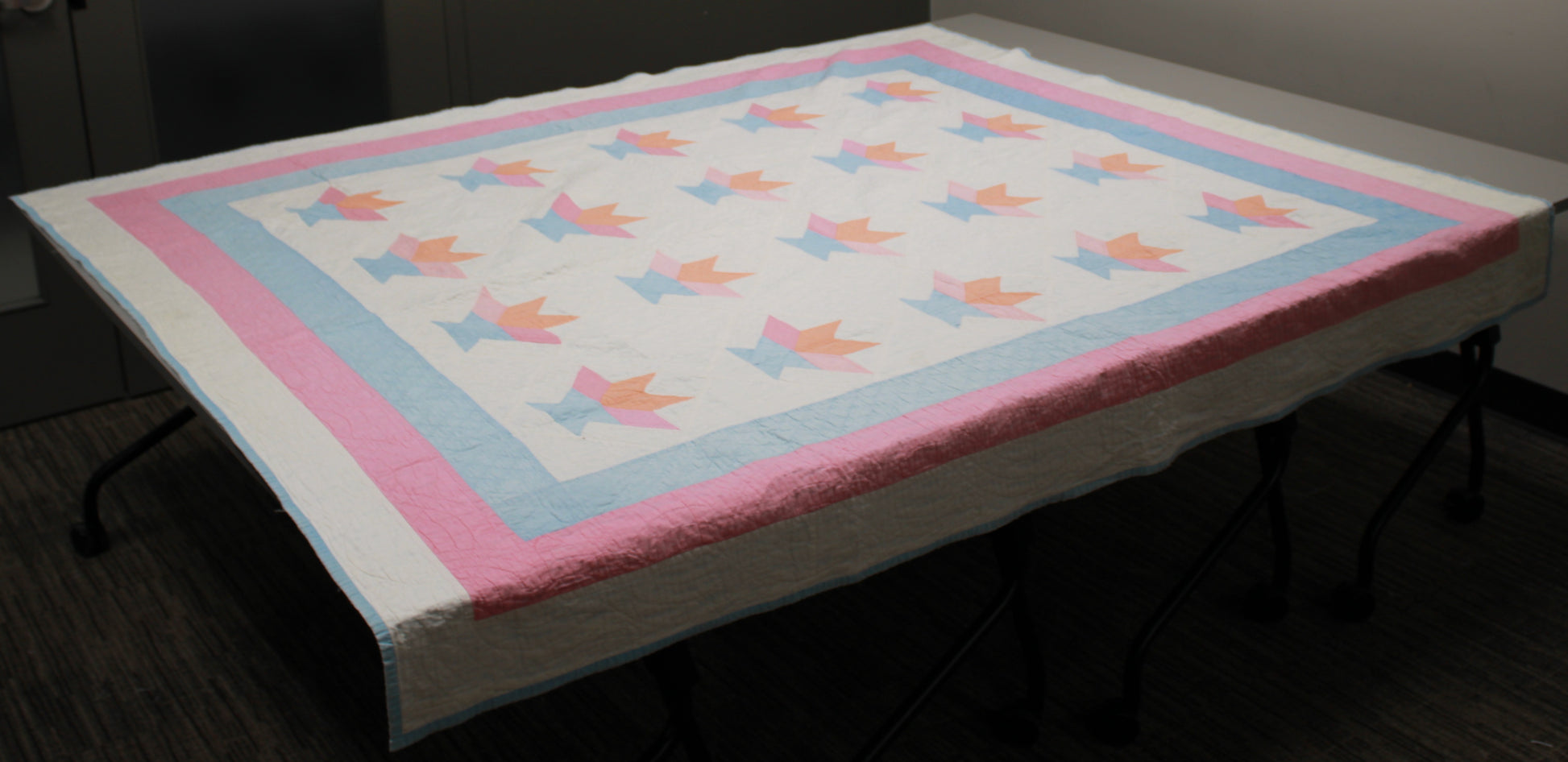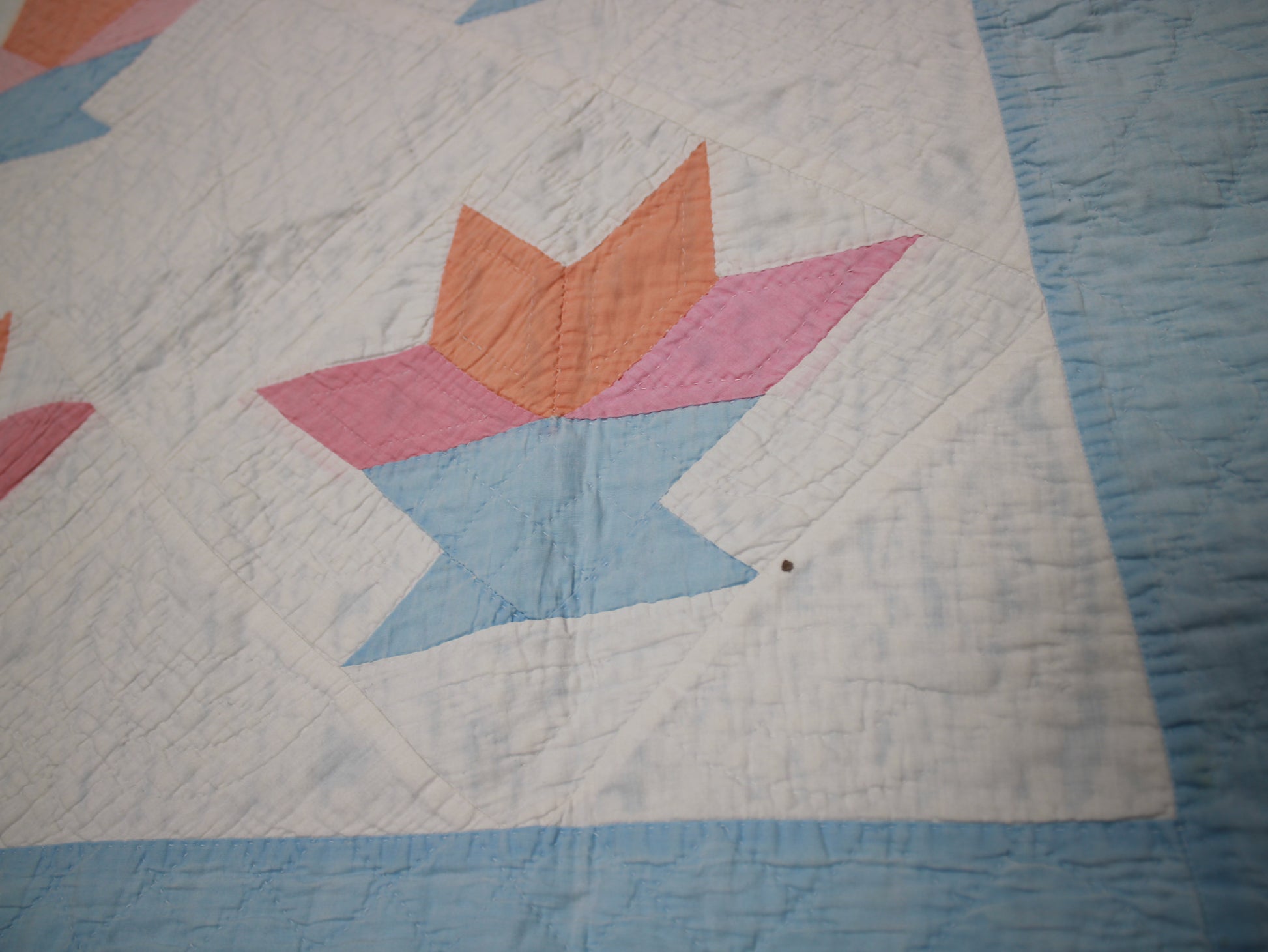 Hand-Quilted Vintage Basket Quilt Queen Size