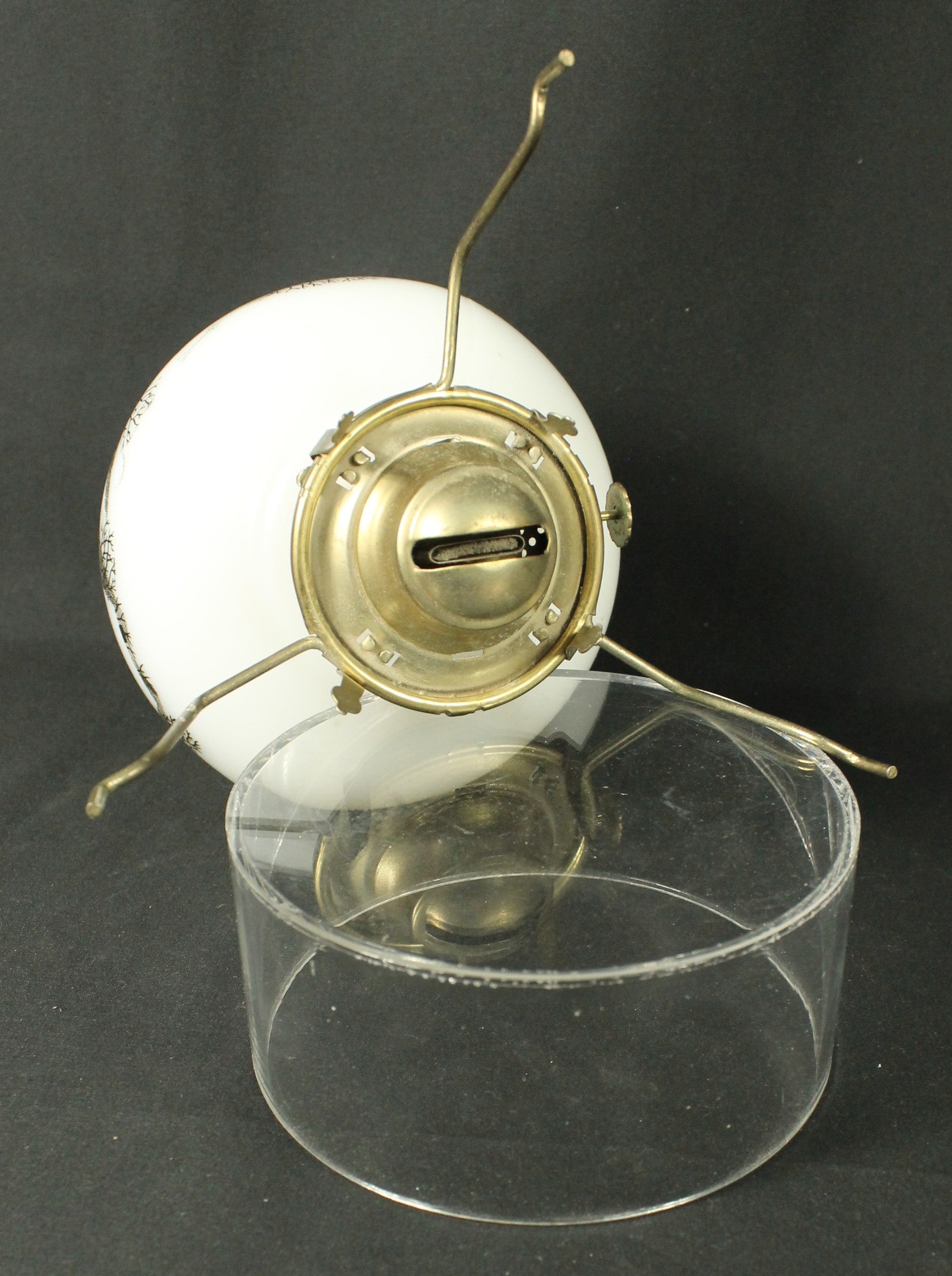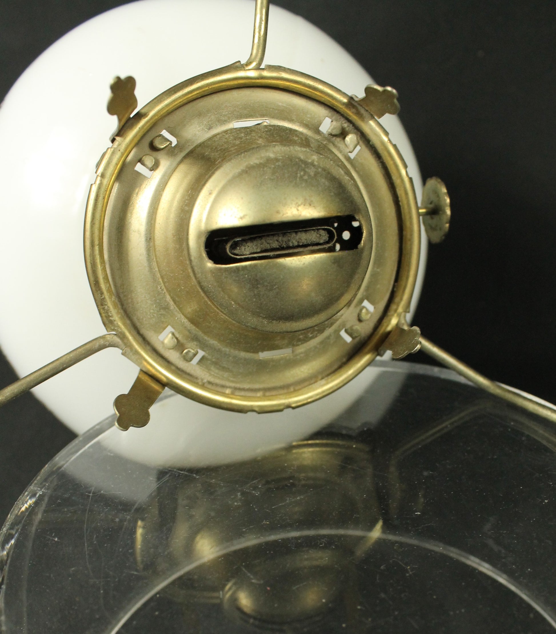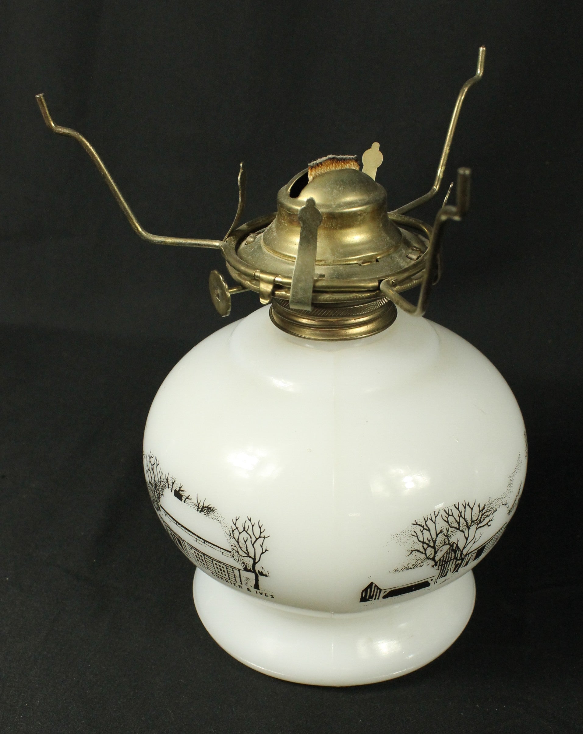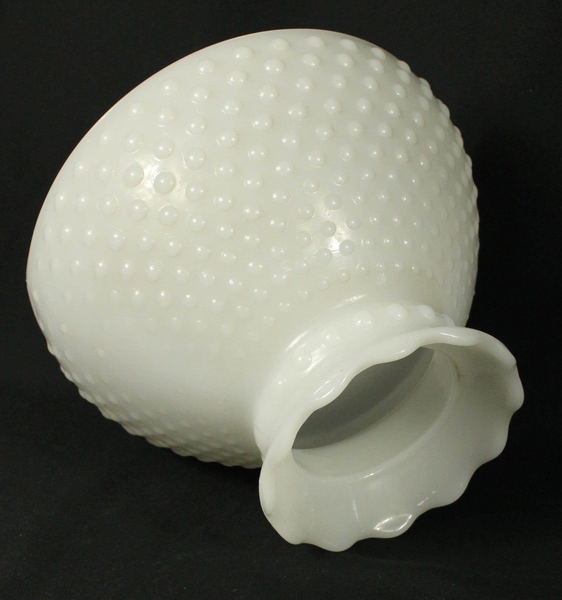 This Hobnail Milk Glass oil lamp from the 1950s features a charming GWTW vintage style. It is in great shape for its age, making it both a functional lighting piece and a nostalgic decorative collectible.