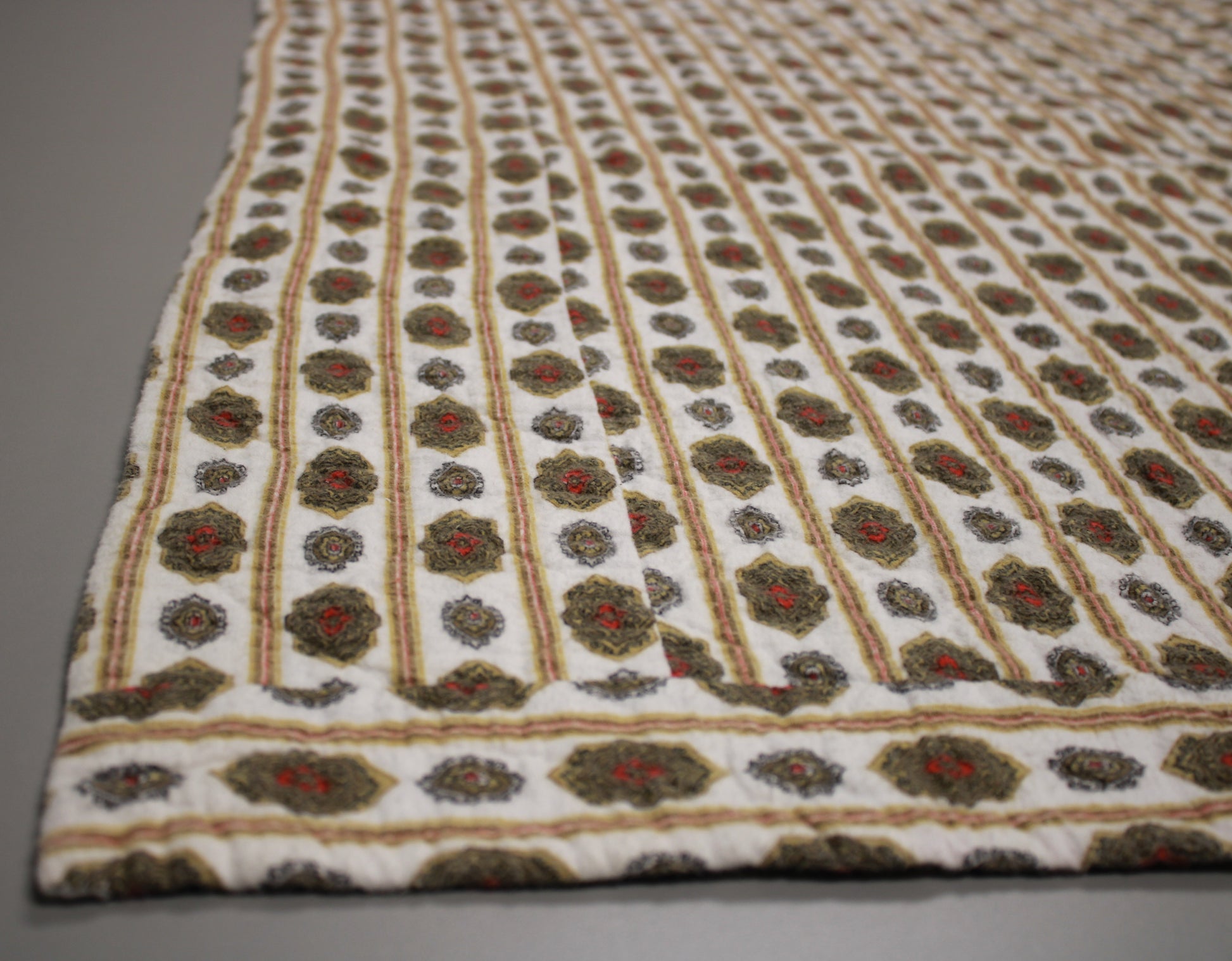 Add a pop of timeless charm to your home with this stunning, hand-stitched vintage floral quilt featuring bold pink sashing and a whimsical cottage core aesthetic. Each block tells a story with delicate blue and red floral patterns, perfectly framed by a unique medallion-print border that carries through to a beautiful striped reverse. Measuring roughly 182 cm x 144 cm, this lightweight yet cozy piece is the perfect size for layering on a bed, draping over a reading chair, or using as a nostalgic picnic blanket. This authentic handmade treasure is full of character and ready to bring a warm, cheerful soul to your favorite living space.
