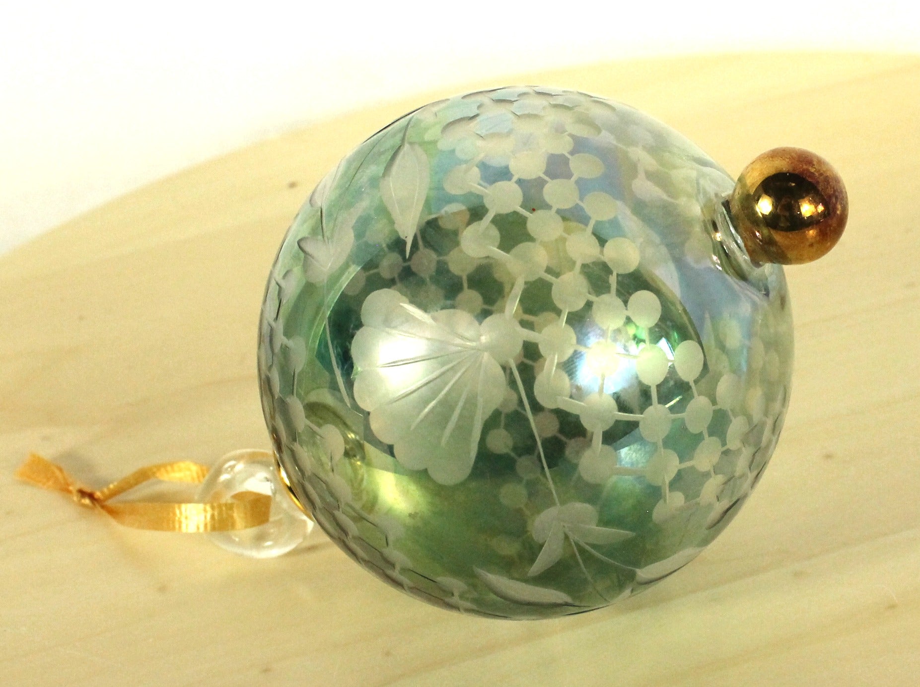 Etched Iridescent Glass Ball Ornament - "Ivy Swag" Design