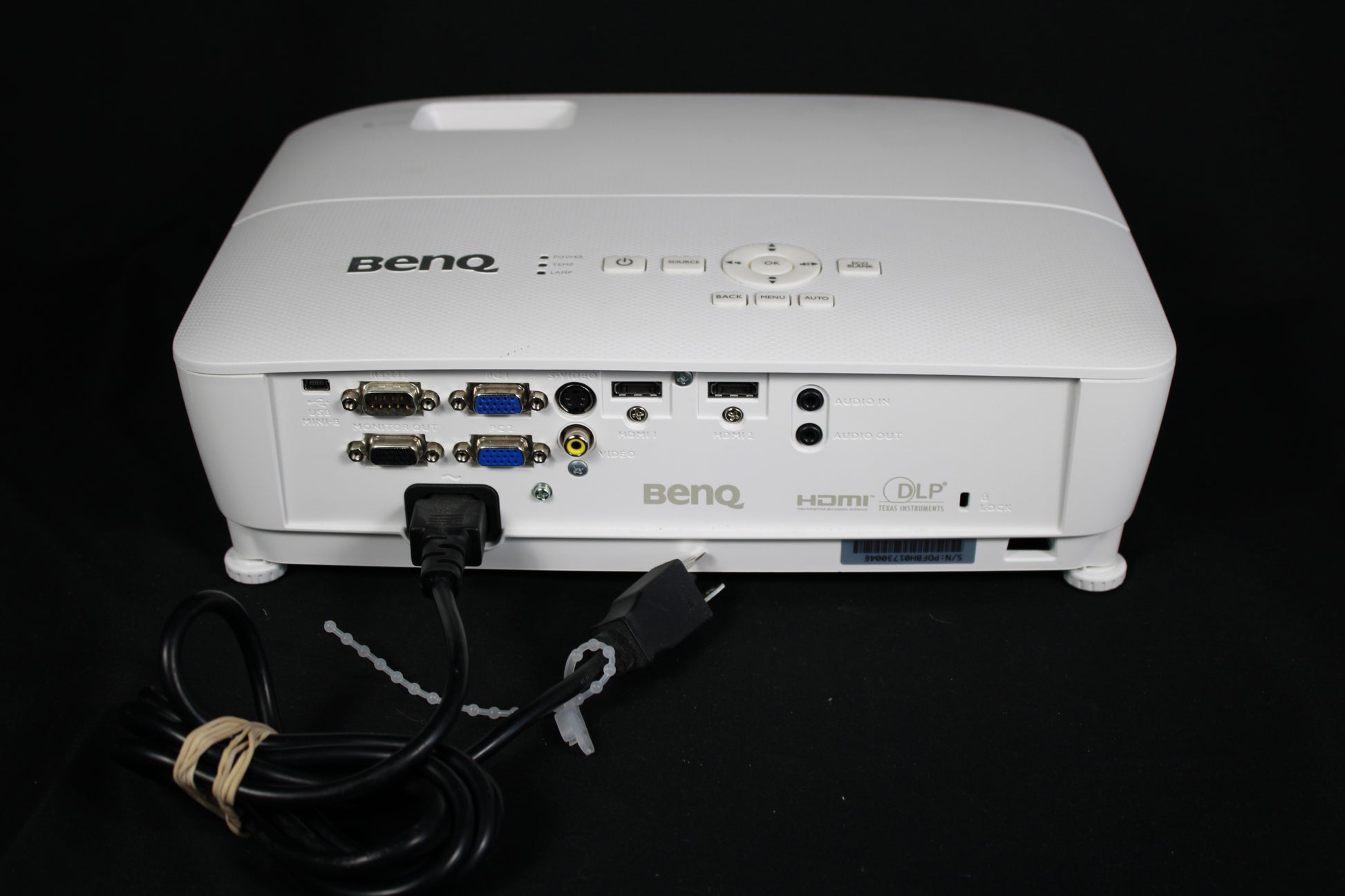 This BenQ MS524AE SVGA projector is a versatile solution for clear, high-brightness presentations in both home and office environments. It features a robust suite of connectivity options, including dual HDMI ports, VGA, S-Video, and composite video inputs to support various multimedia devices. The DLP technology and adjustable focus and zoom rings ensure sharp image quality, while the integrated Eco Blank mode helps extend lamp life during downtime. This item is fully functional and has been power-tested and includes a standard power cable for immediate setup.