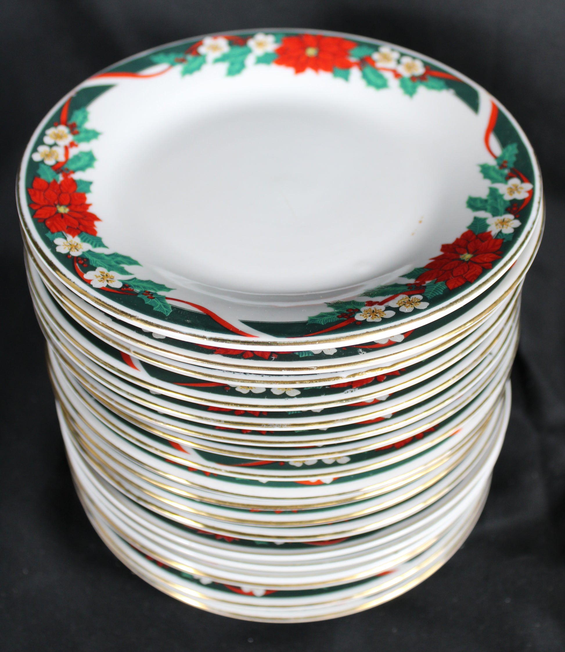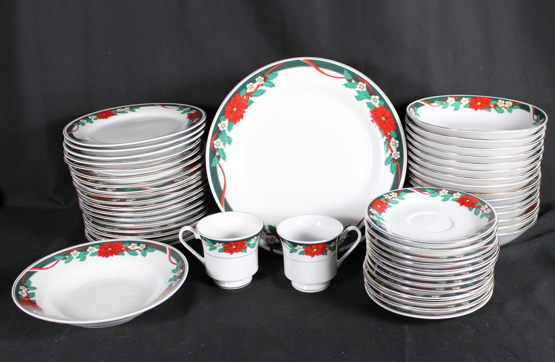 Christmas Poinsettia and Ribbon Dinnerware Set 49 pcs