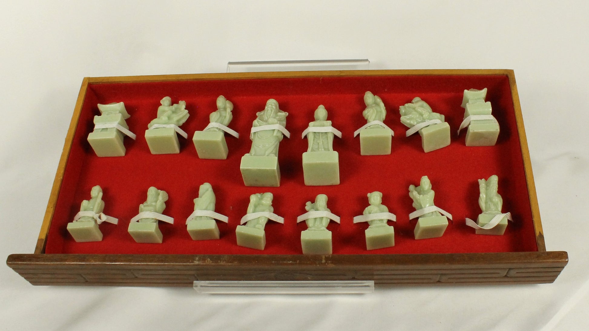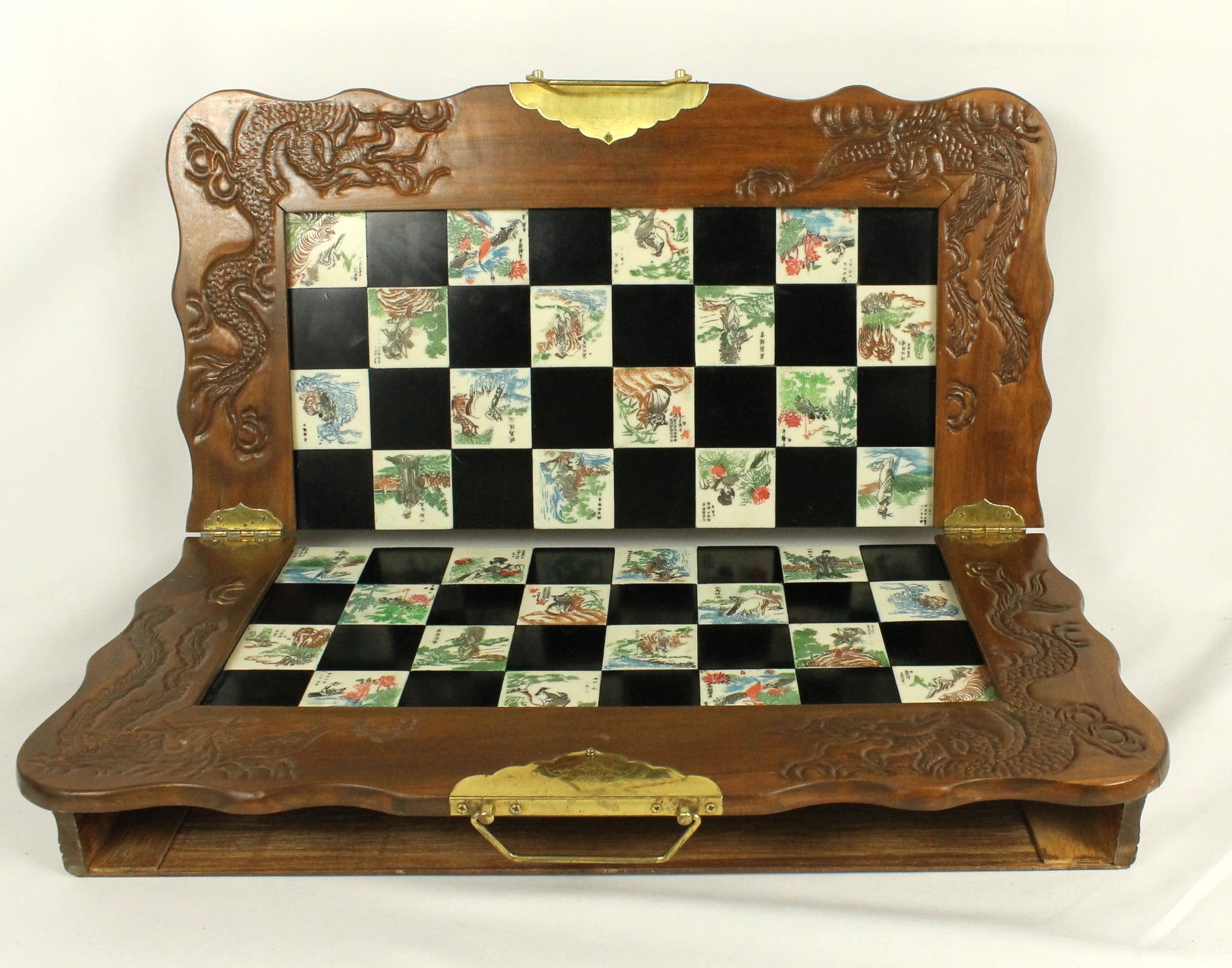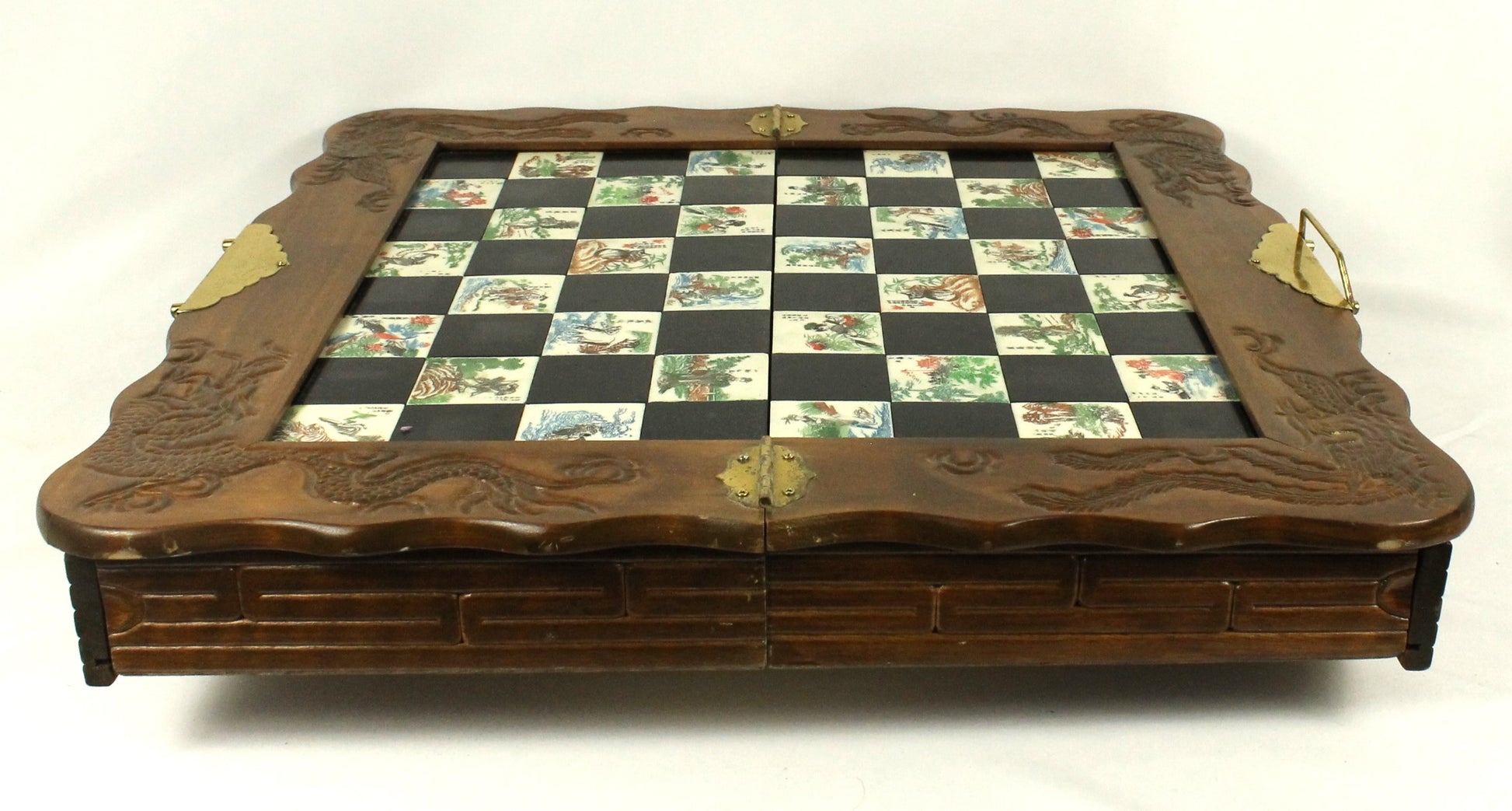 Wooden 8 Fairies Carved Chess Set with Oriental Tile Board & Pieces