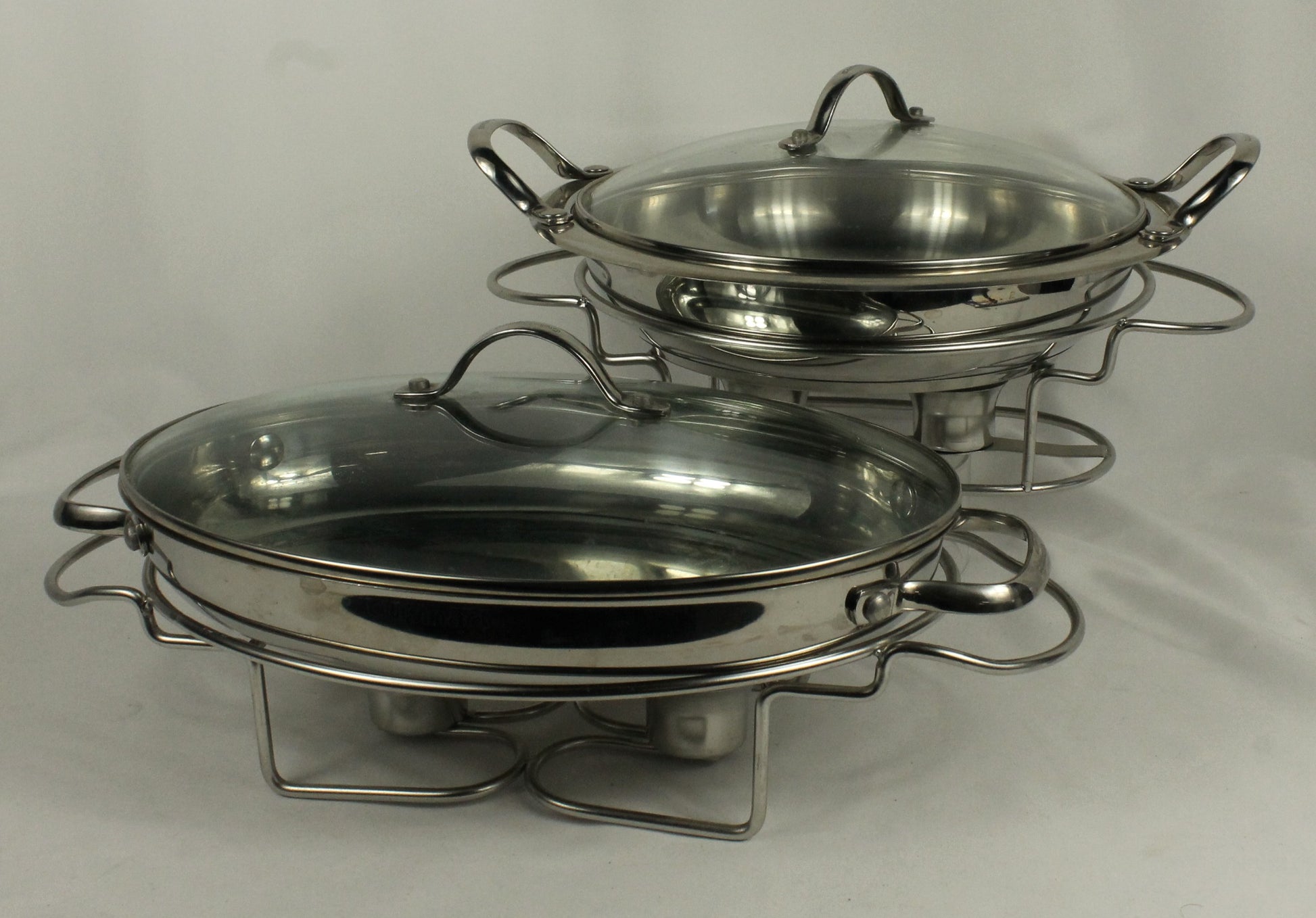 This listing includes two Cuisinart buffet server sets, with a total of six pieces. Designed for both style and function, they are perfect for serving meals at gatherings or special occasions. The sets are in gently used condition.