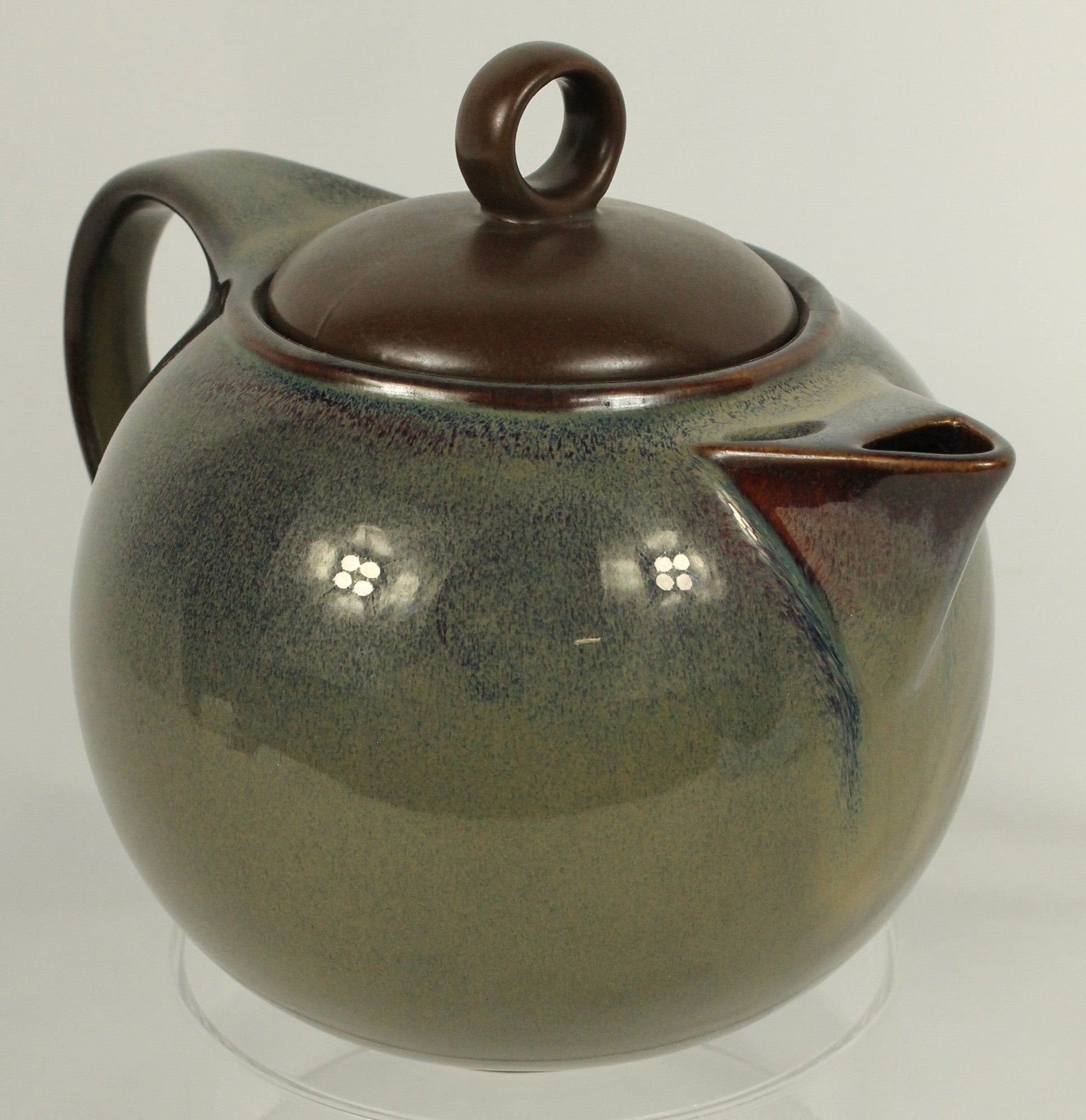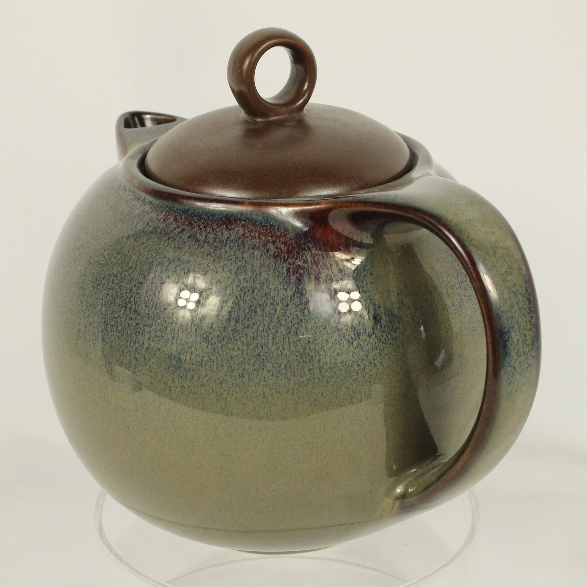 This large stoneware teapot features a brown and blue speckled design and comes with a matching lid. It is like new and ready for use, combining functionality with a charming, rustic style.