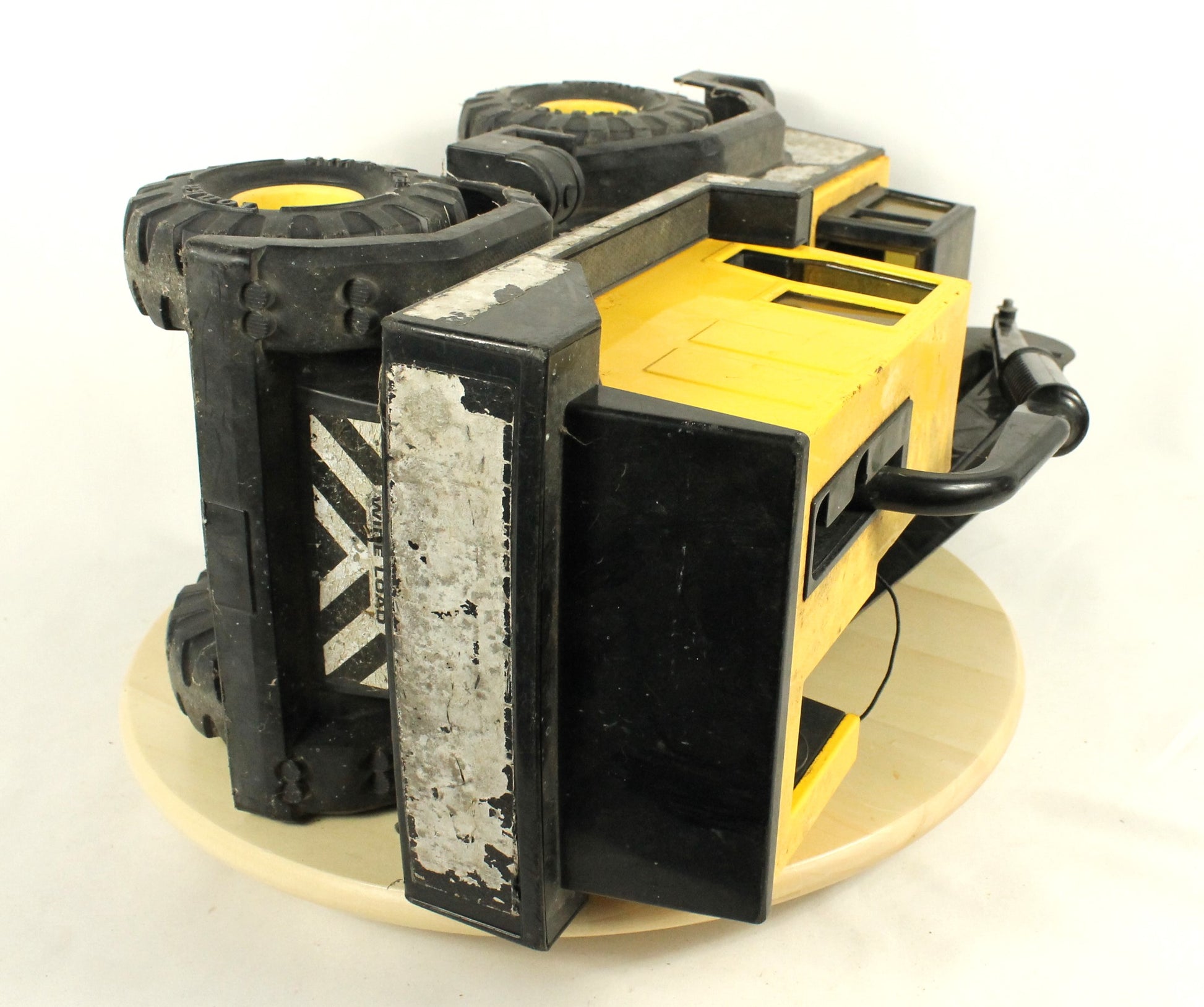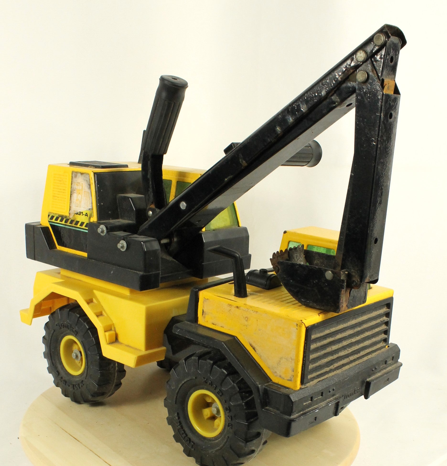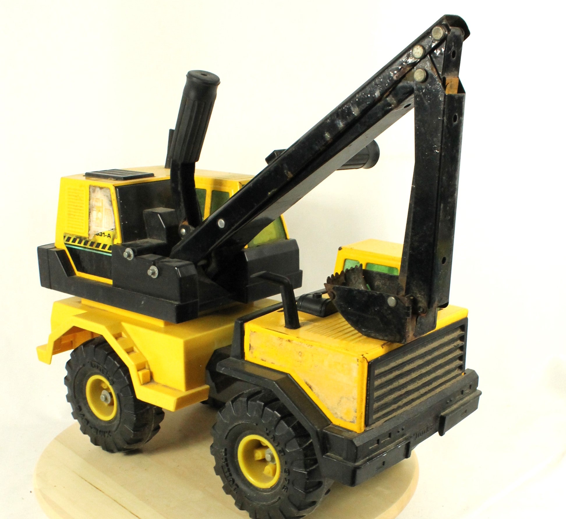 Both tankers show signs of age, with rust and worn movable joints that could benefit from some oiling. One tanker is missing its shovel, adding to the well-loved, played-with character of the set.