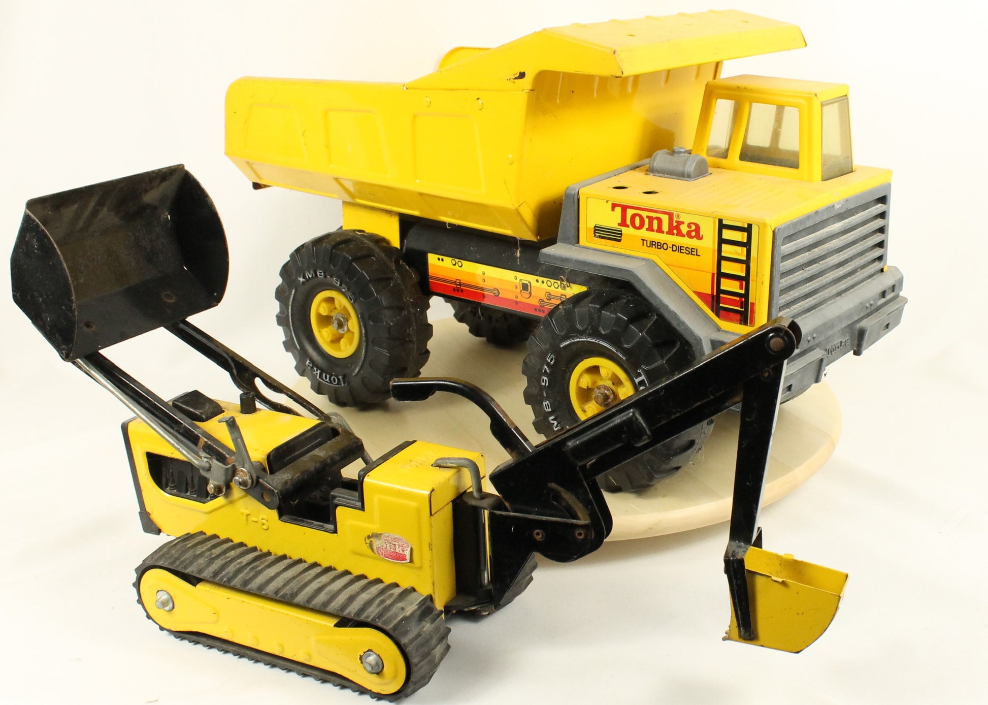 Vintage Tonka Turbo-Diesel Dump Truck & T-6 Bulldozer/Backhoe Metal Construction Vehicle Lot