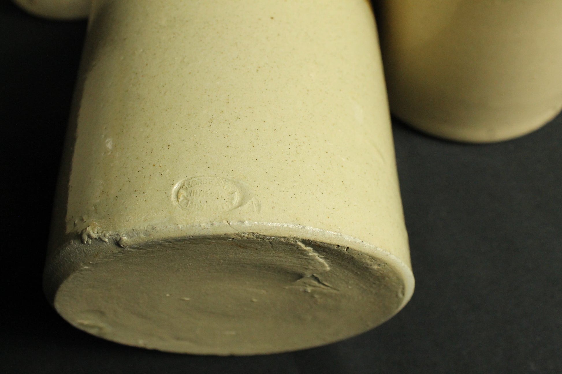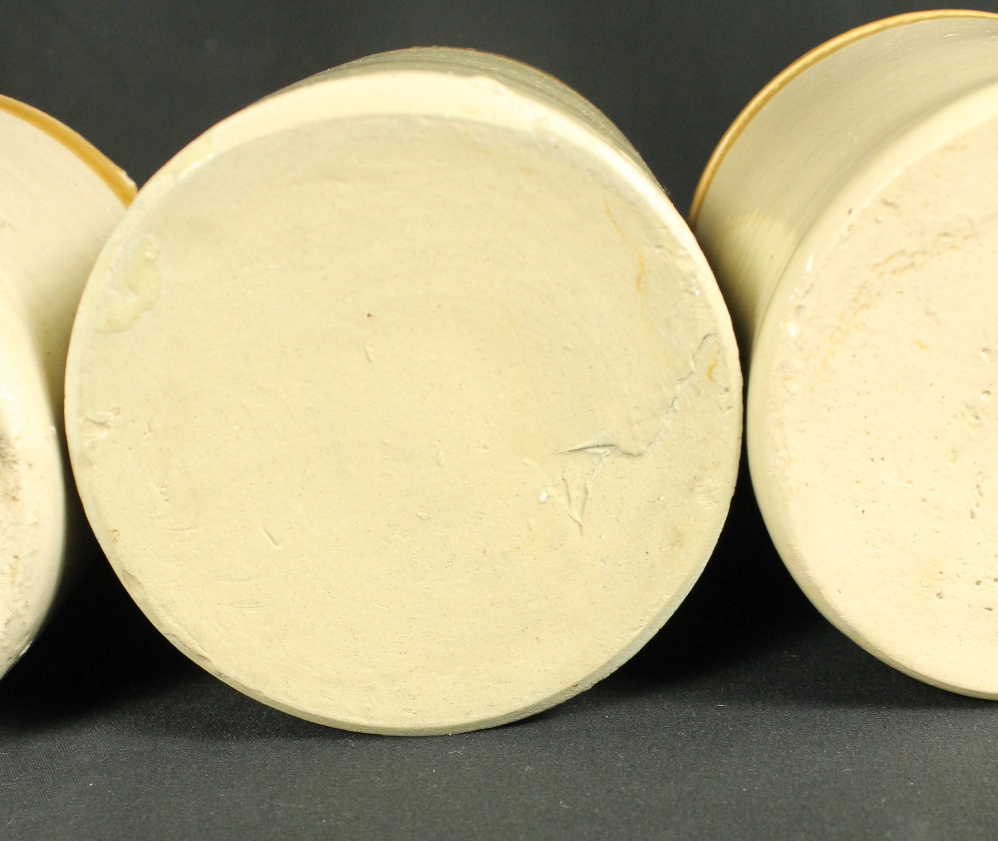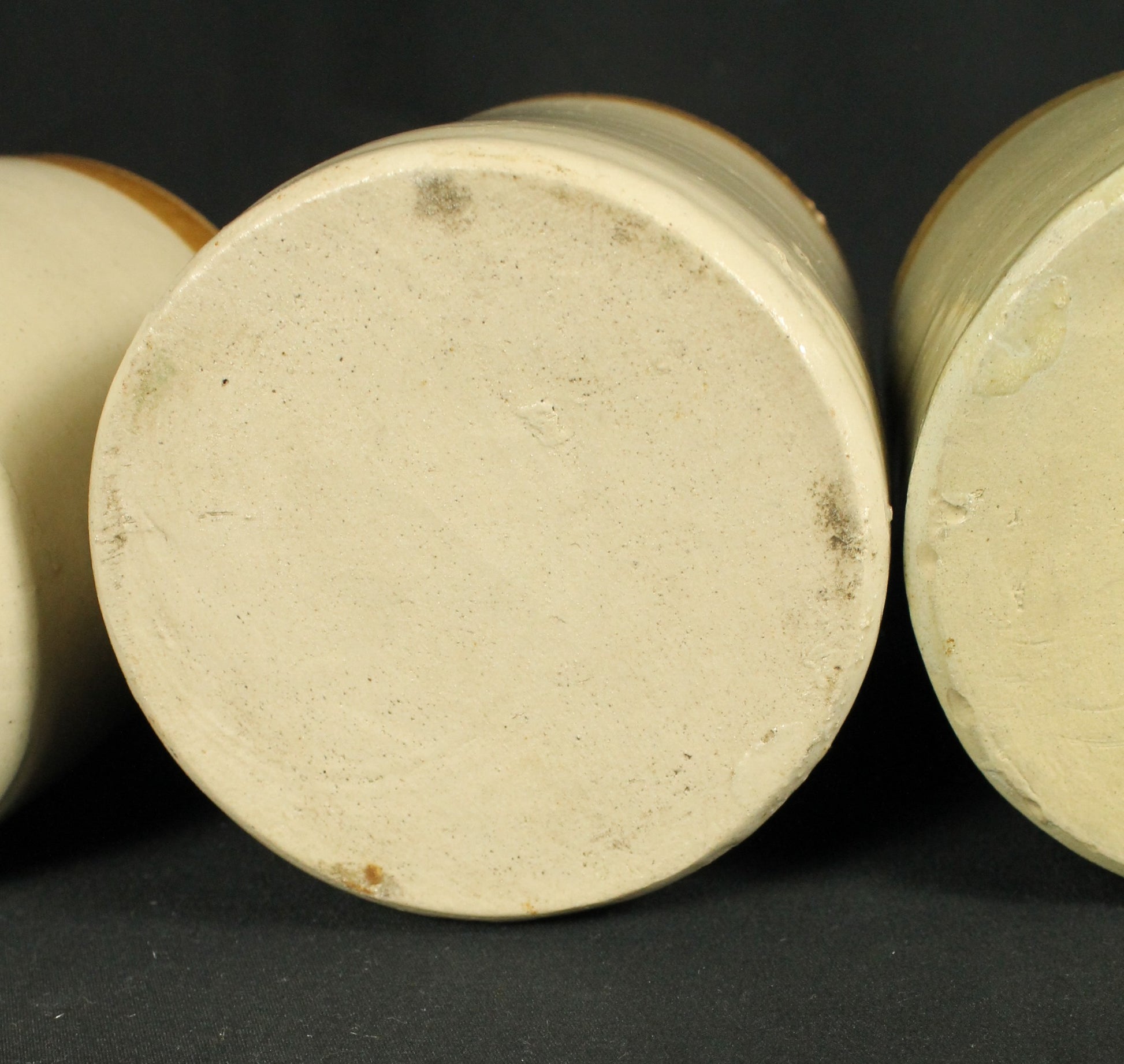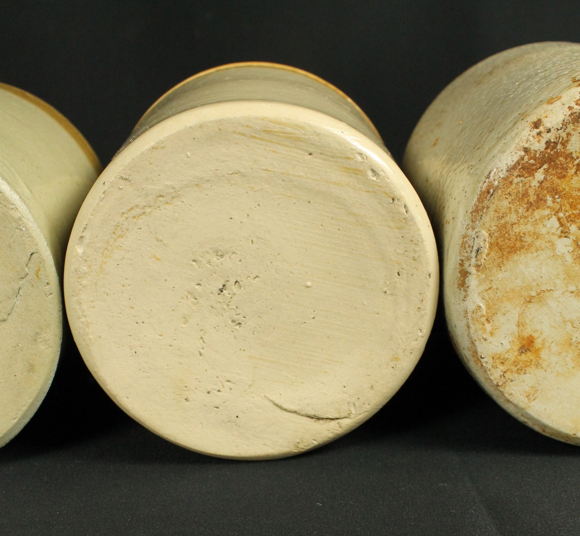 This set includes five primitive glazed crocks of varying sizes, including one large and four small pieces. They are gently used and show some manufacturer flaws, adding character and authenticity. The crocks are ideal for decorative display or collectible purposes.