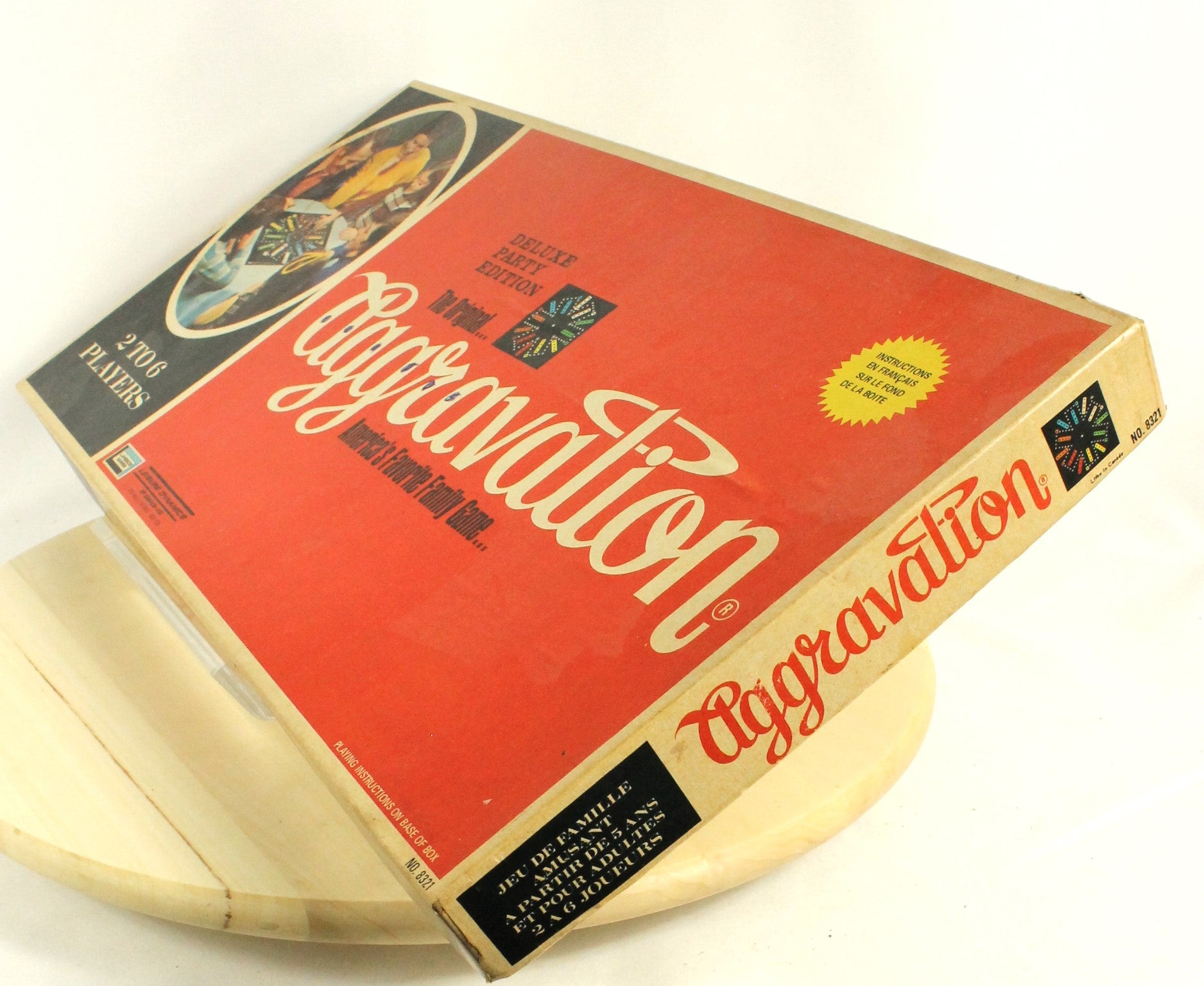 This Aggravation board game, Deluxe Party Edition (#8321 Leisure Dynamics), is a complete set ready for gameplay. A classic family game, it offers hours of fun and friendly competition.