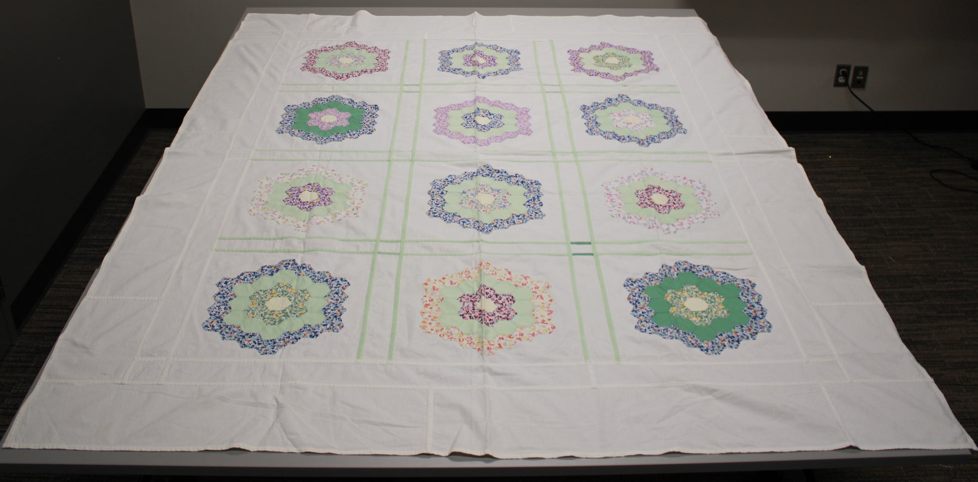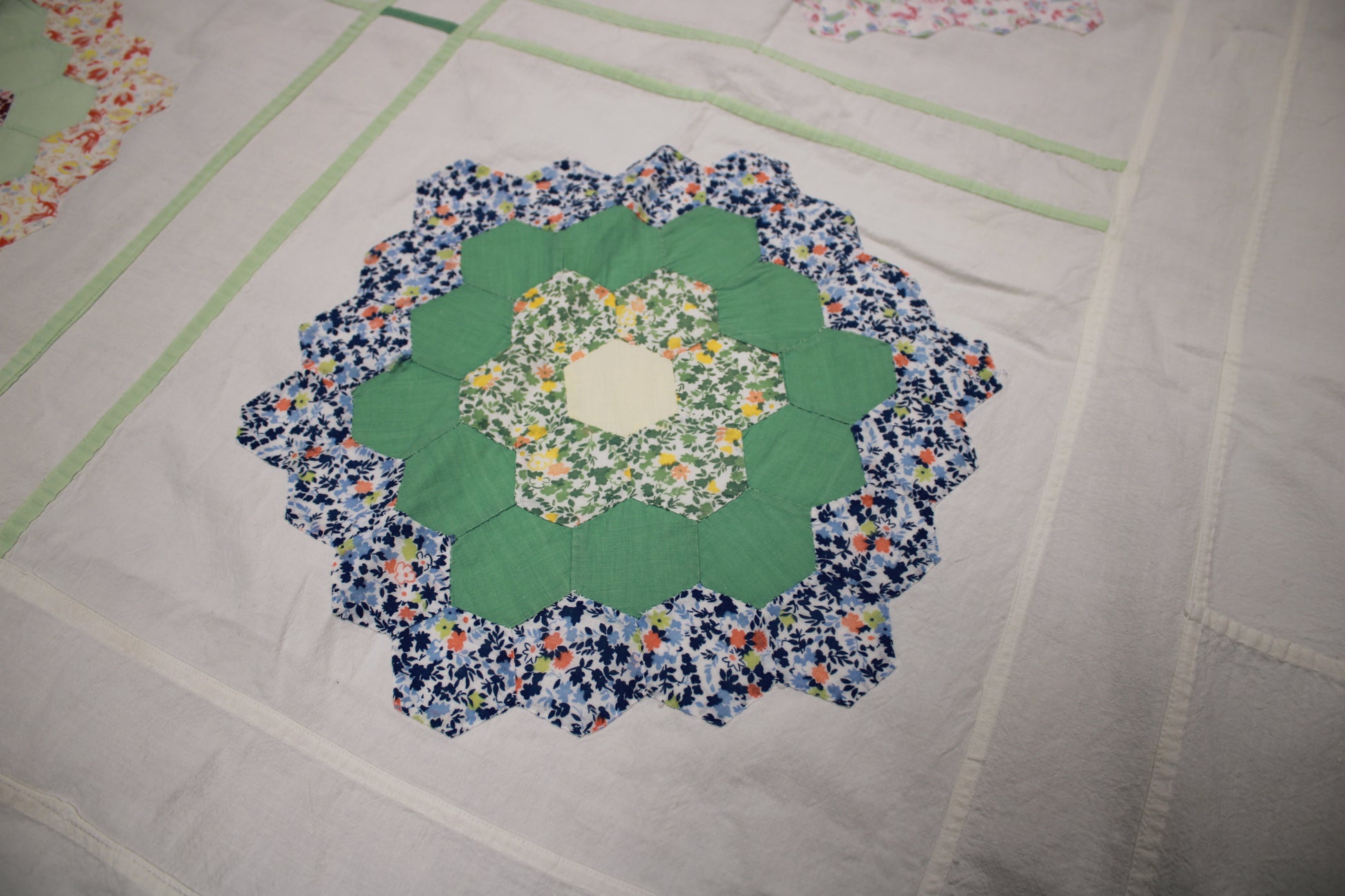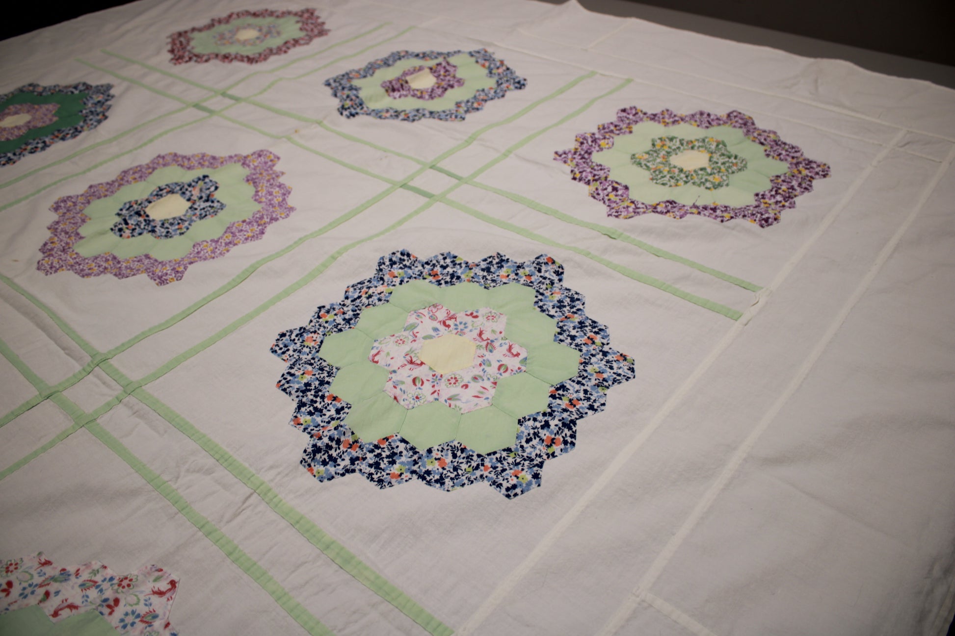 Antique Grandmother’s Flower Garden Hand-Pieced Bed Topper