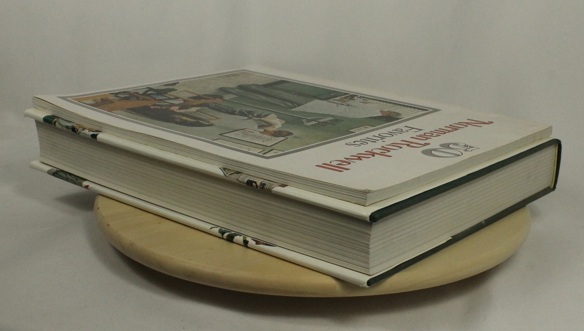 Both large hardcover books are in good condition and provide hundreds of full-color reproductions of his classic paintings and Saturday Evening Post covers. Please note: The book "50 Norman Rockwell Favorites" has an inscription on one of the front end-pages shown in photos.
