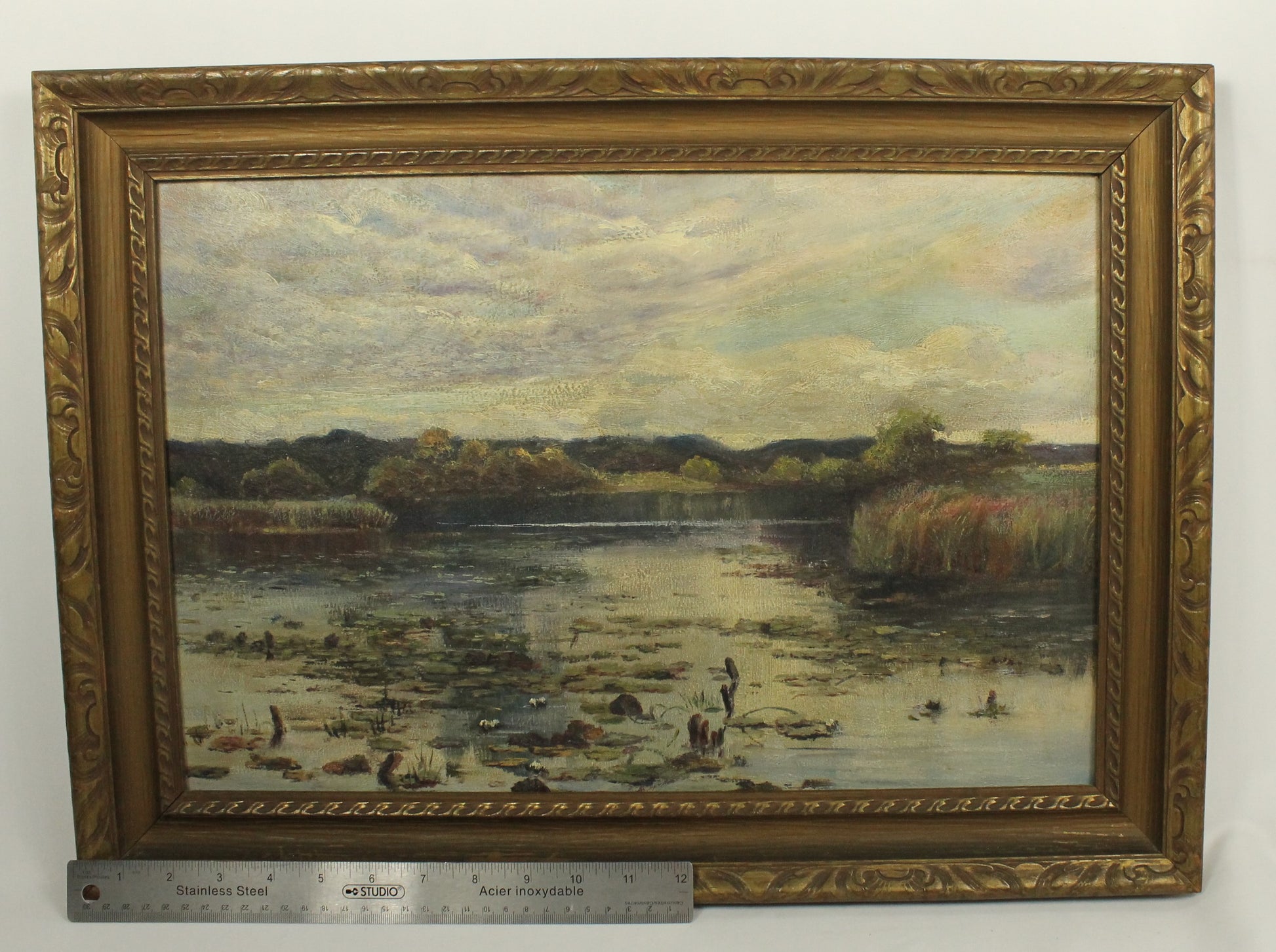 Vintage Wetland Landscape Oil Painting - Duck Pond with Water Lilies