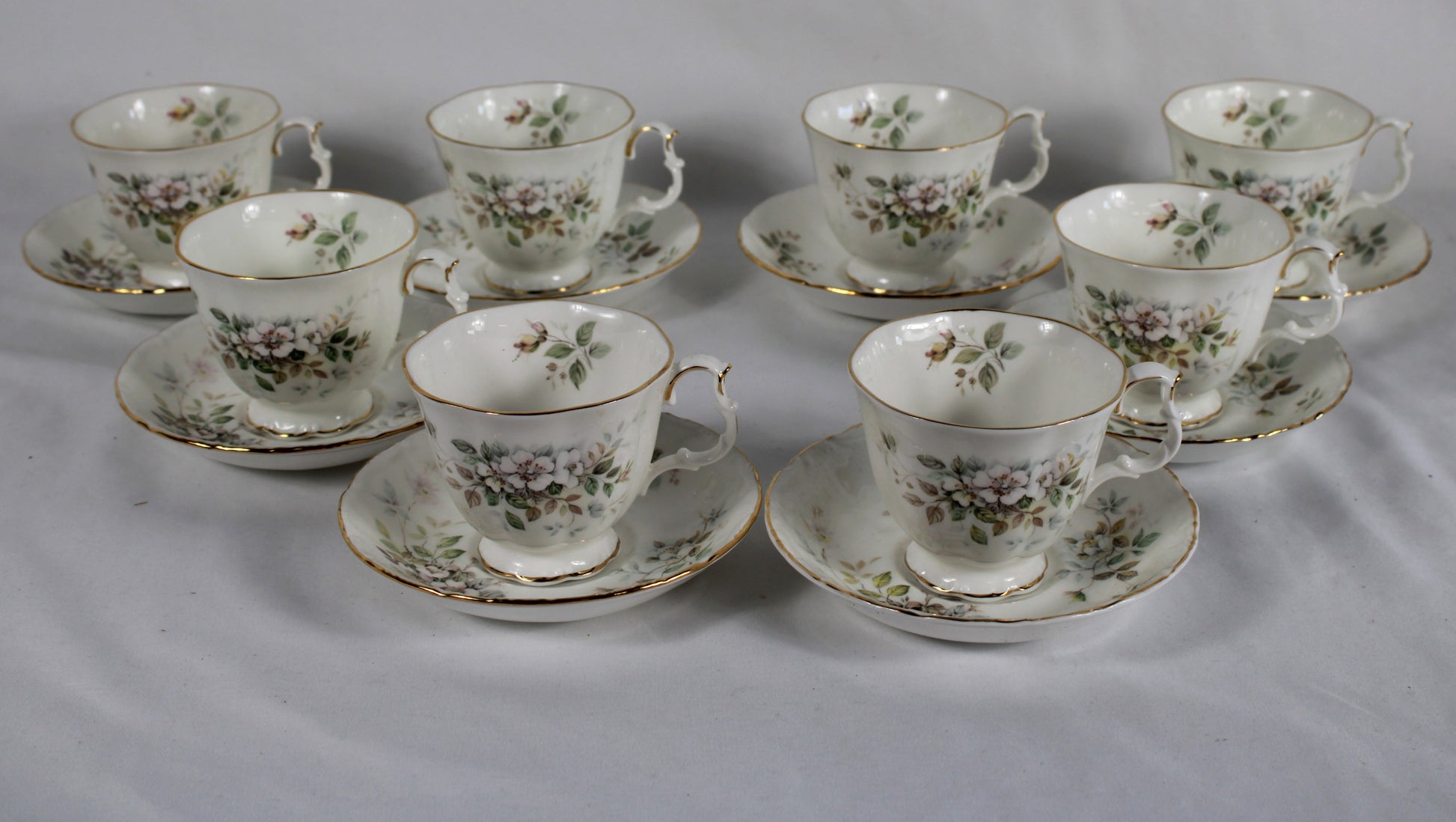 Set of 8 Royal Albert Haworth Bone China Tea Cups and Saucers