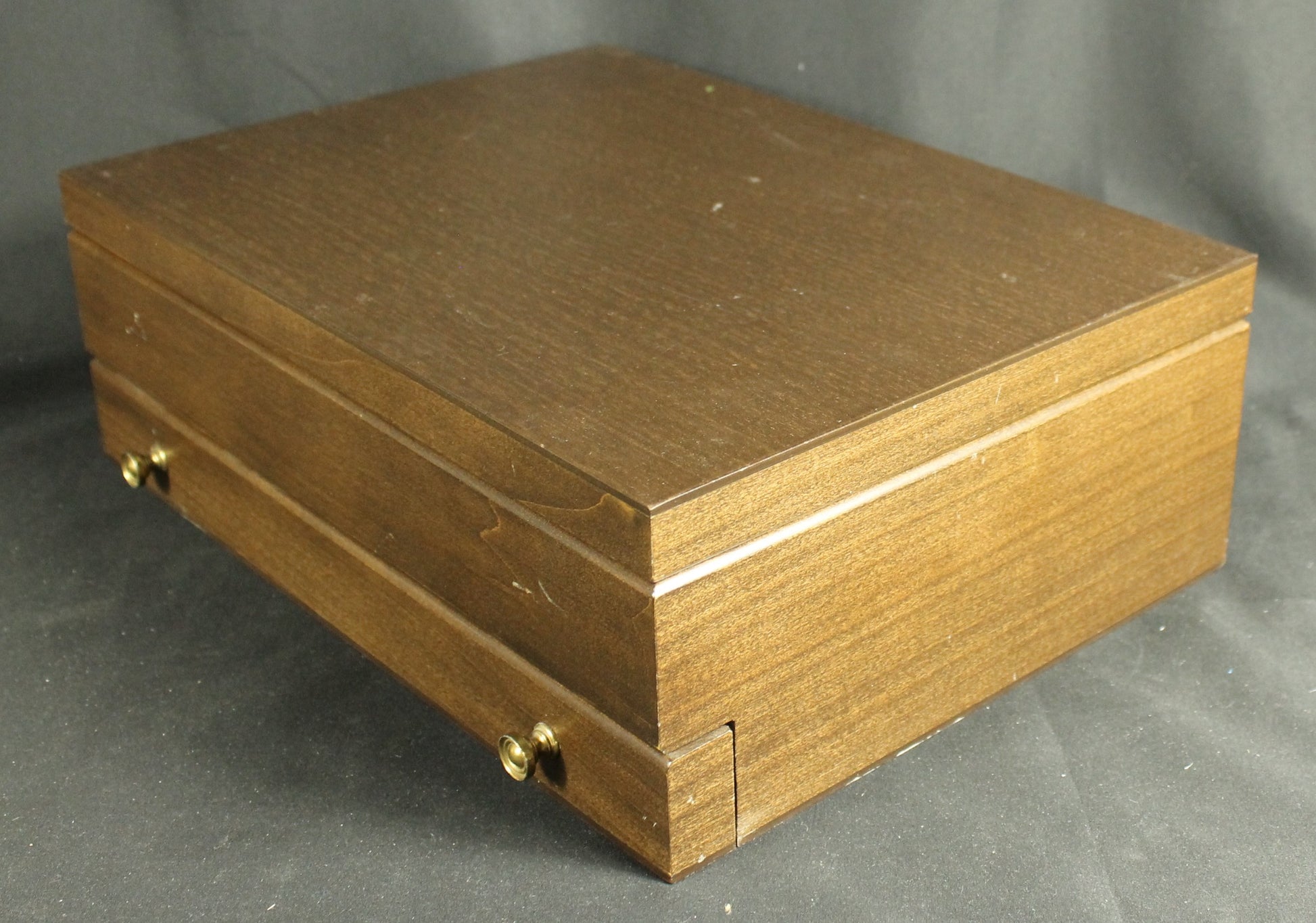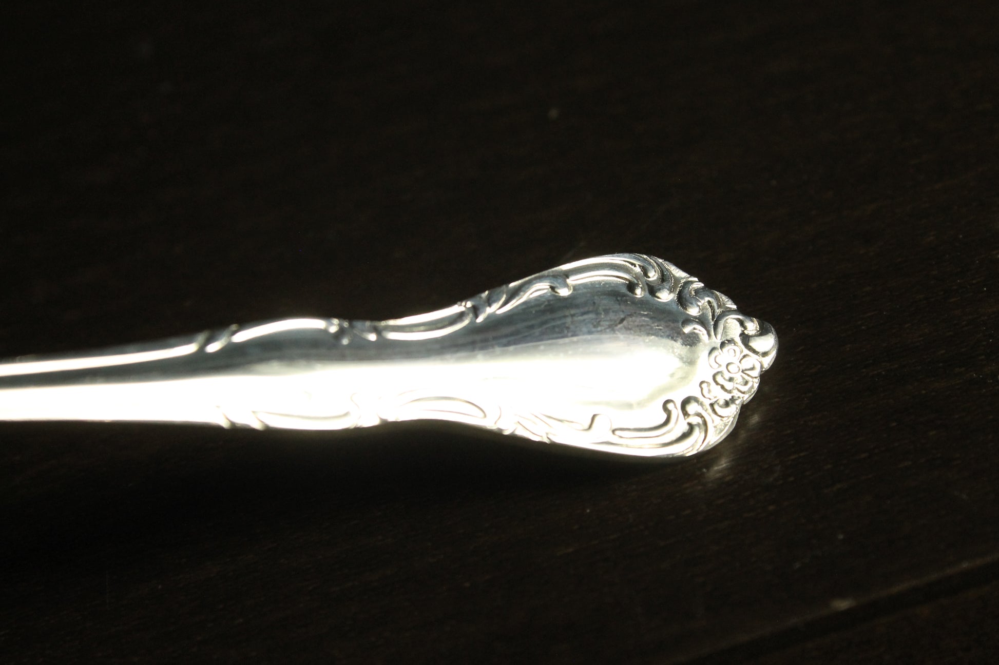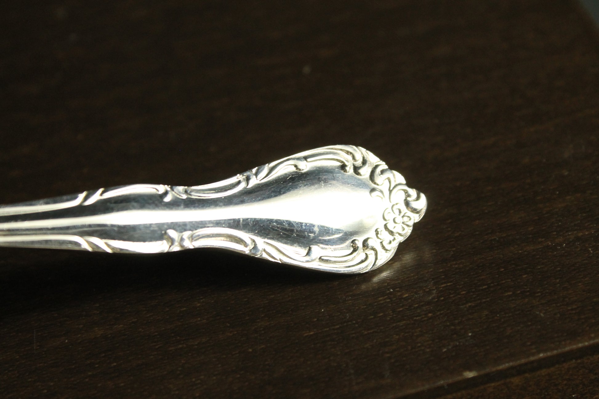 This 64-piece flatware set features the elegant Magnolia pattern, complete with its original storage box. The set is in new condition, with some utensils still sealed in plastic.