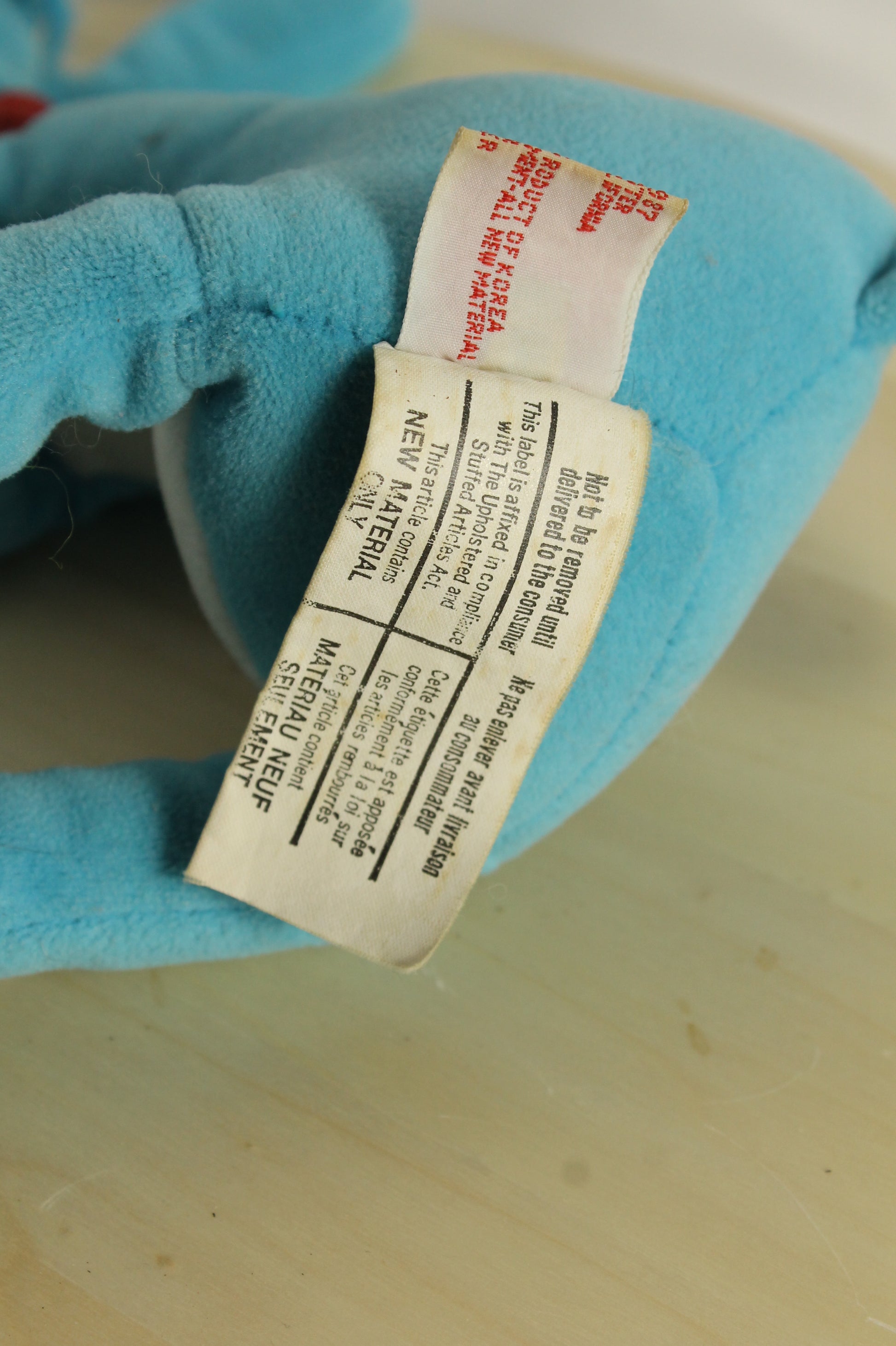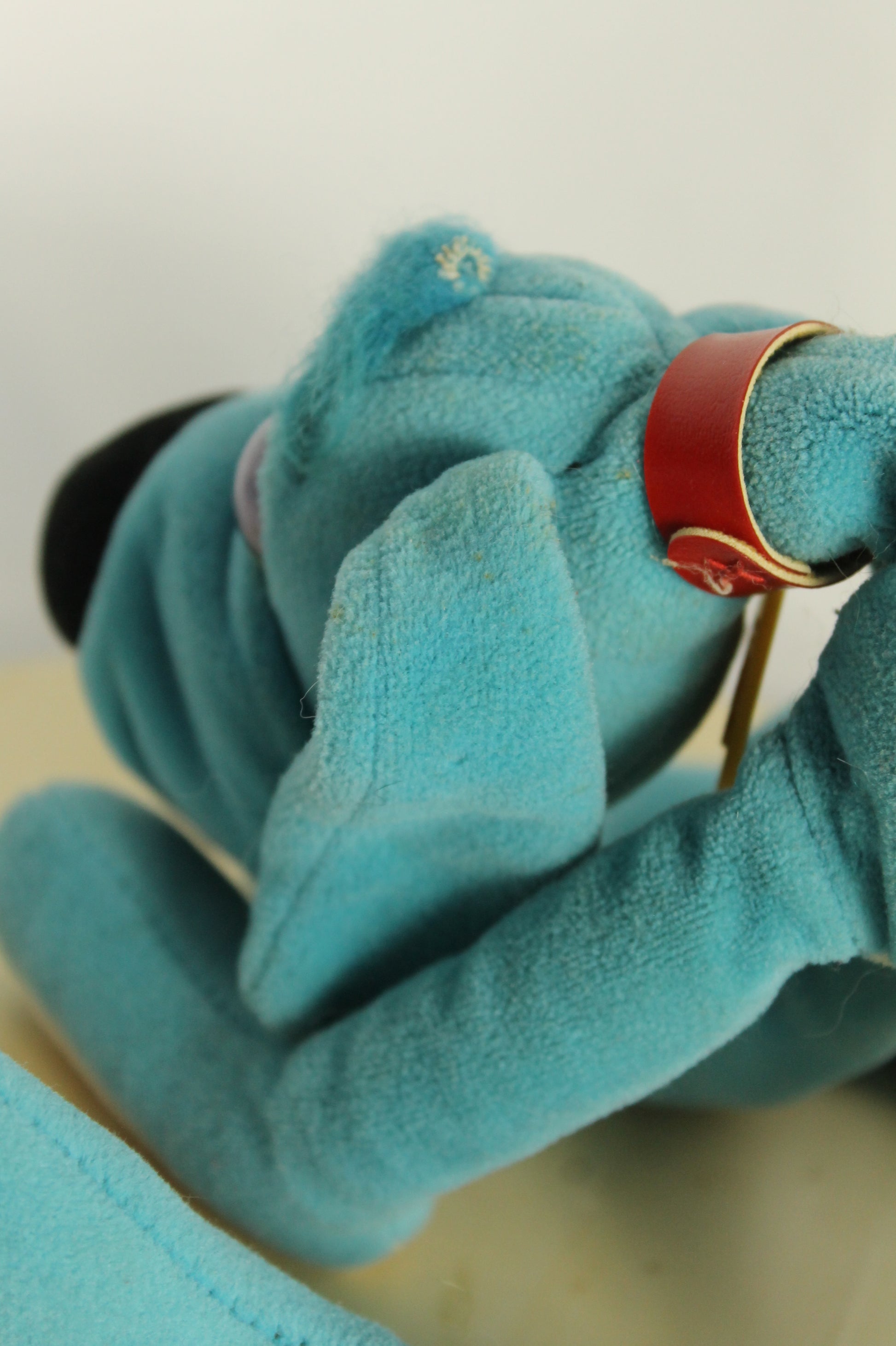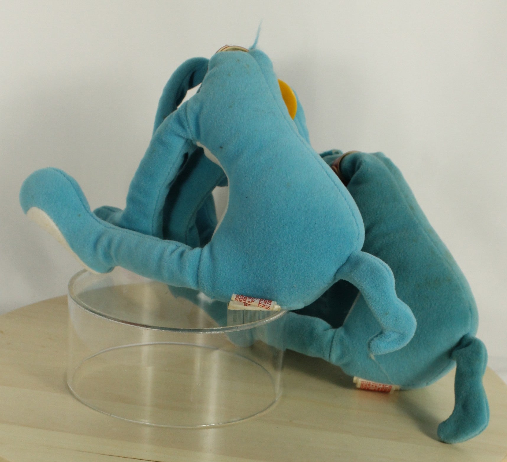 This set includes two Sepp/Mendez Blue Flop Dogs from 1987, made in Korea. Each measures about 14 inches from nose to tail.