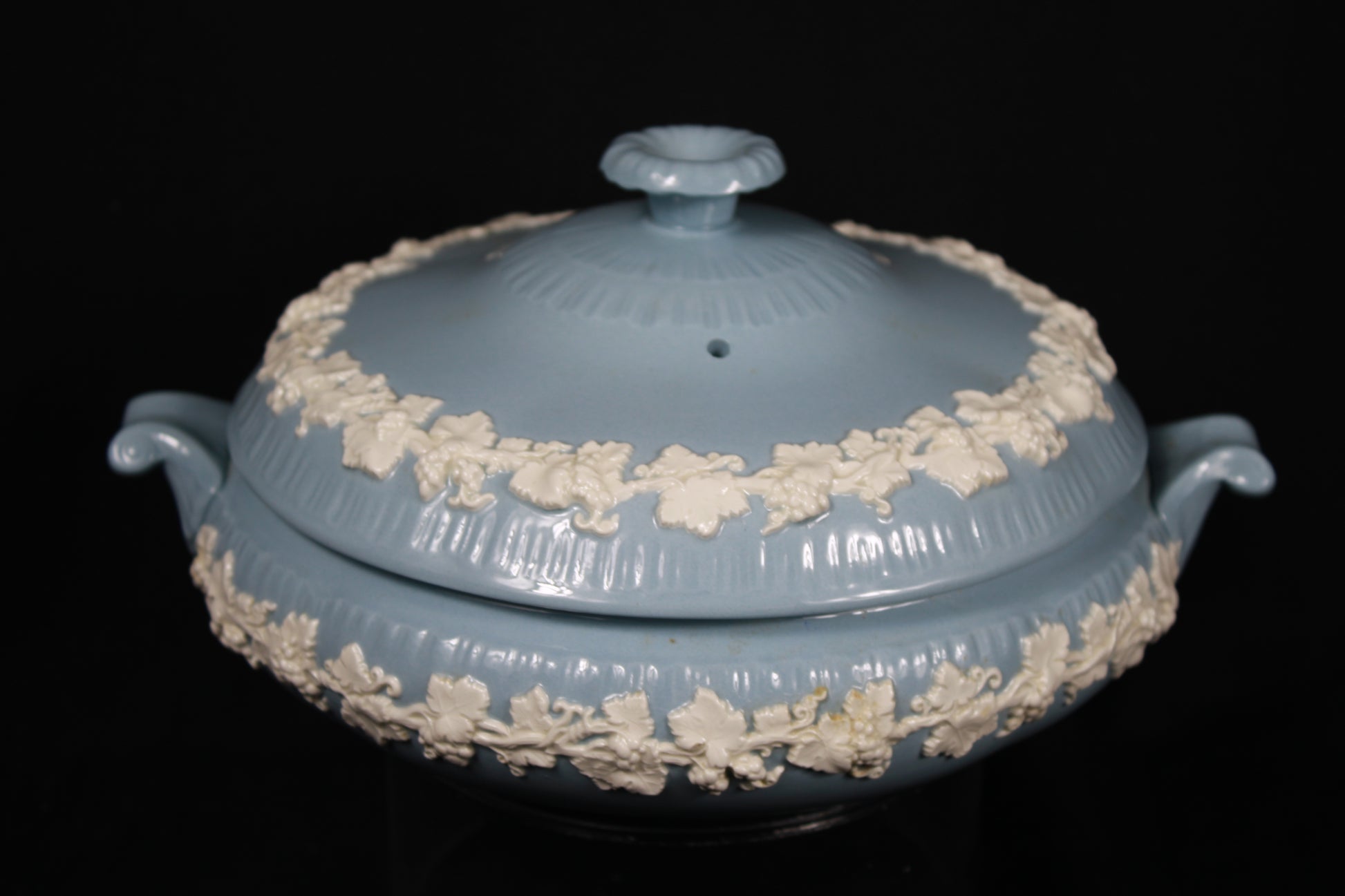 Wedgwood Embossed Queen's Ware Lavender Blue Covered Vegetable Tureen