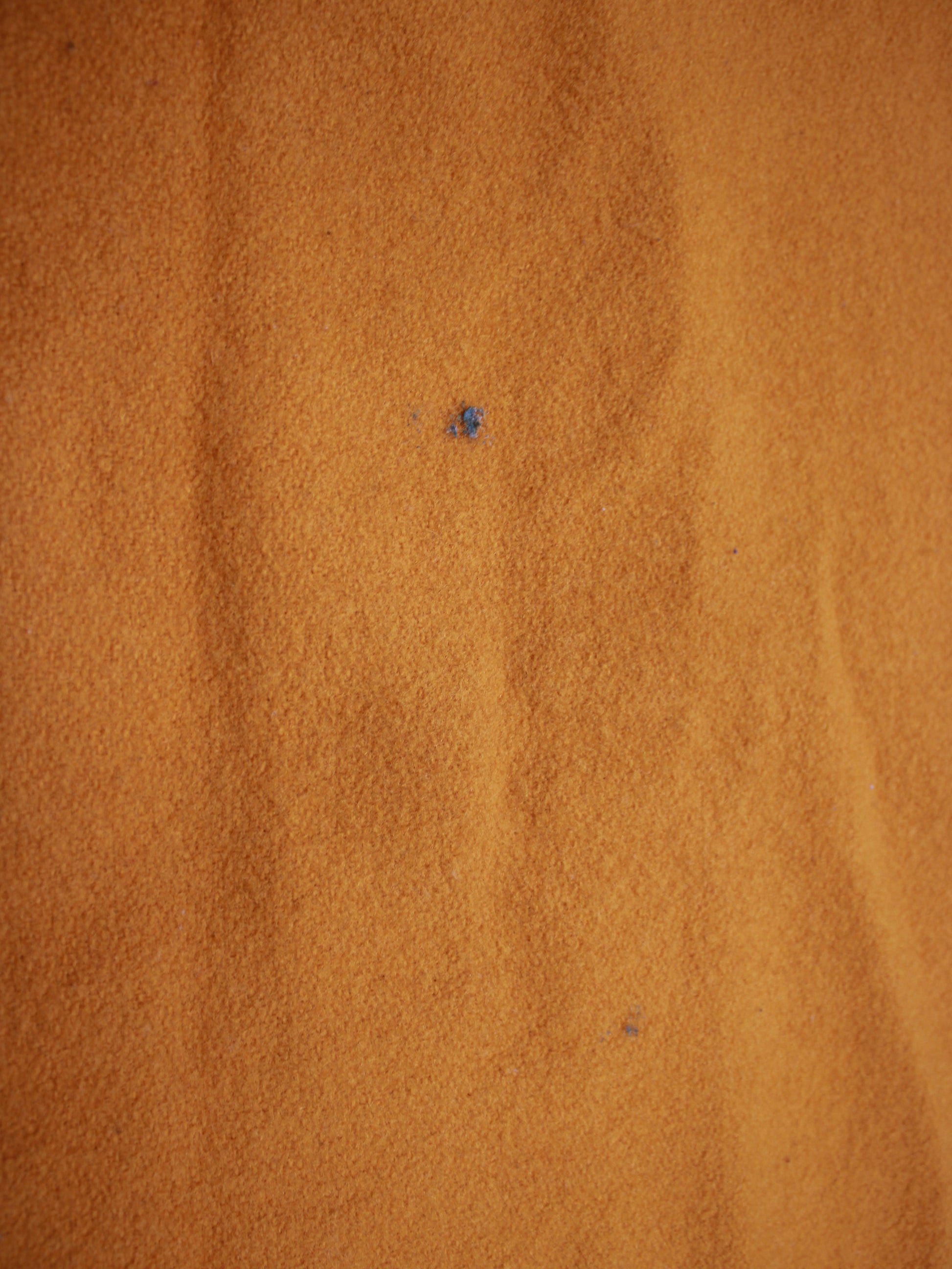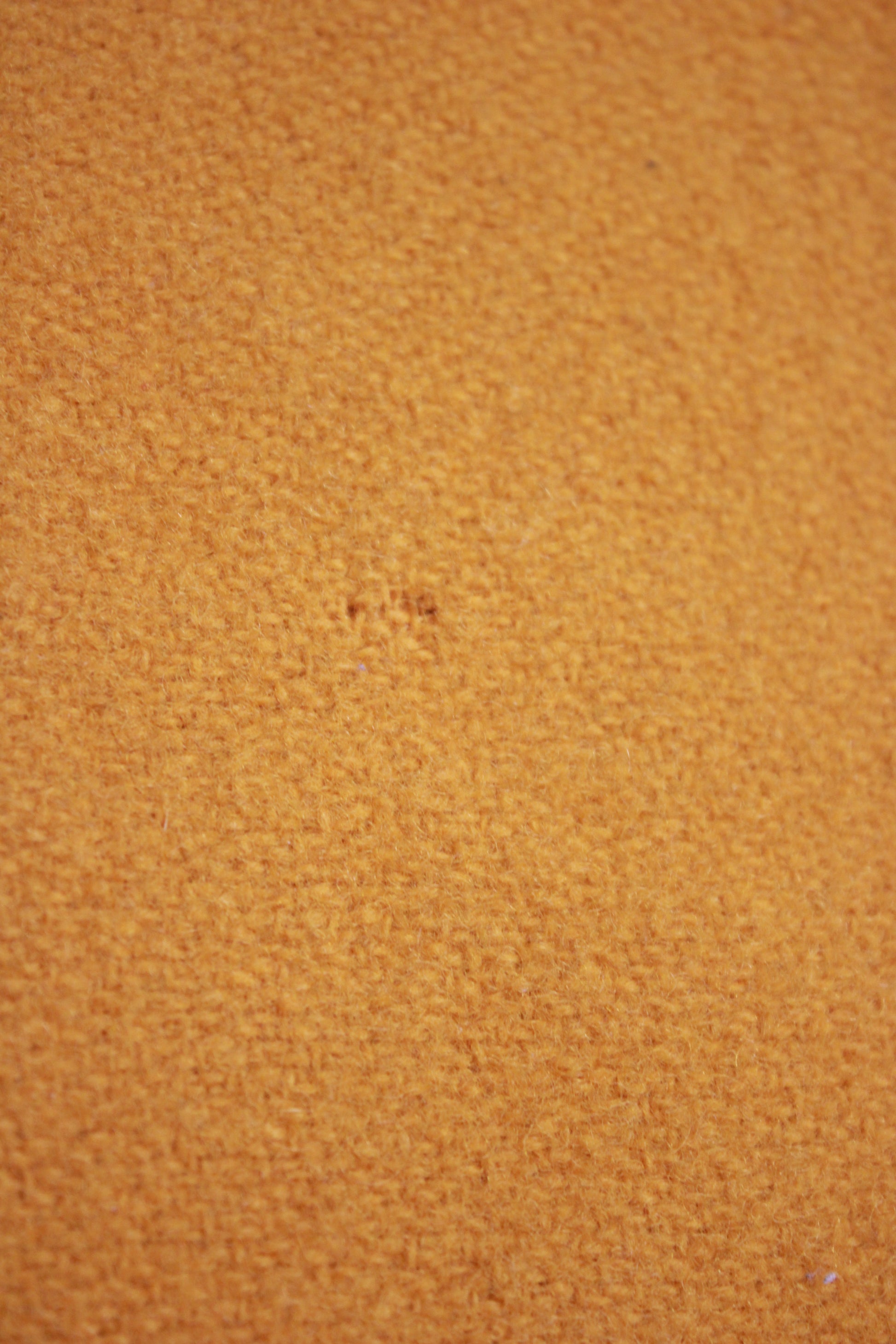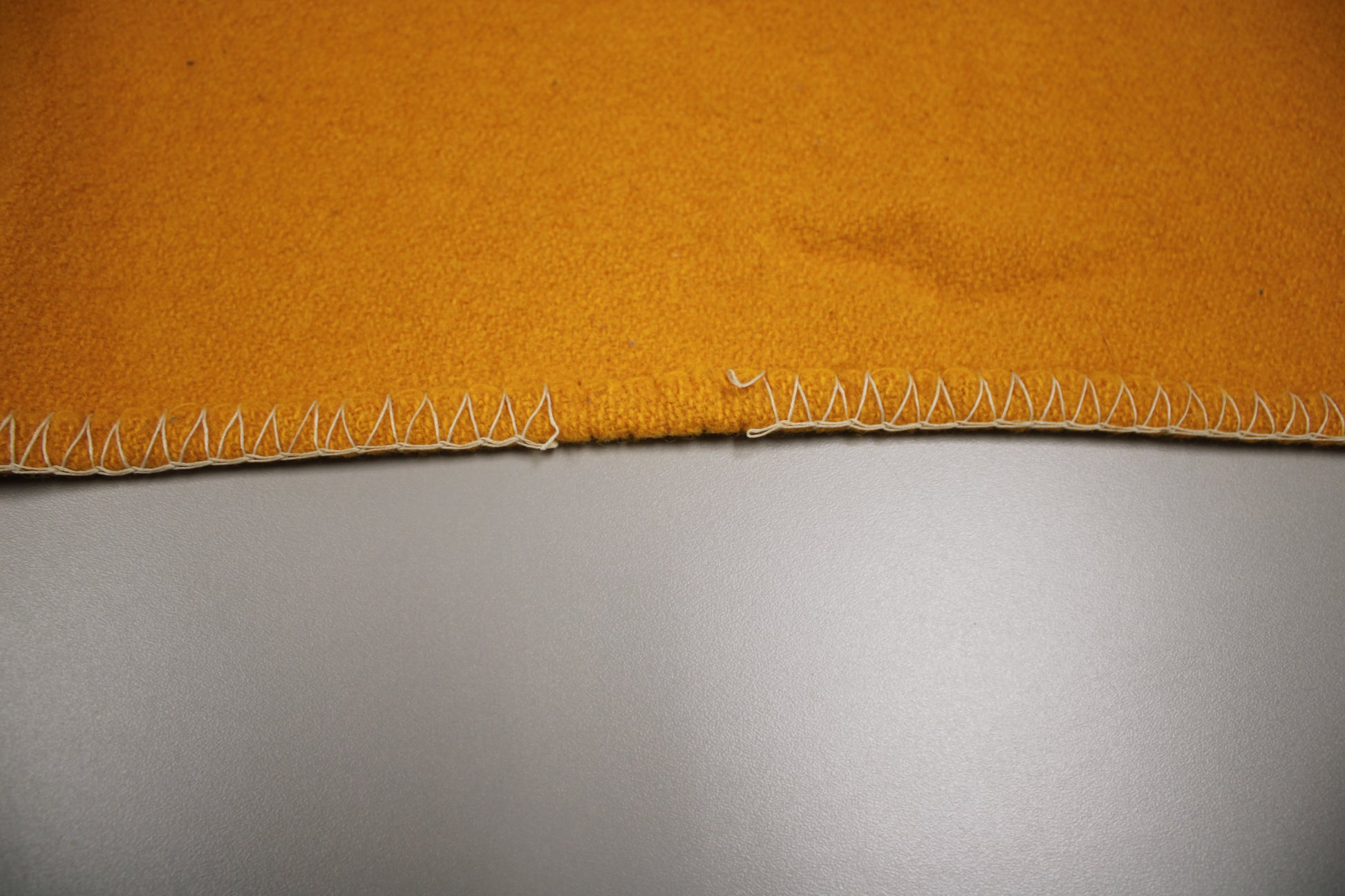 This vintage blanket is crafted from 100% pure new wool, offering exceptional warmth and a heavy, high-quality feel. It features a vibrant mustard gold color finished with traditional cream blanket stitching along the edges. Please note that as a vintage item, it shows some signs of its history, including a few small thinning spots and minor surface marks as shown in the photos. At a generous size of 185 x 230 cm, it is perfectly suited for a queen-sized bed or as a substantial throw for a sofa.