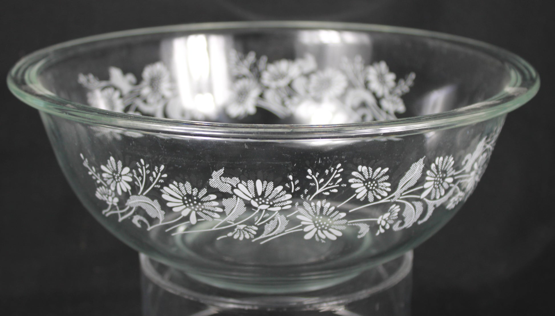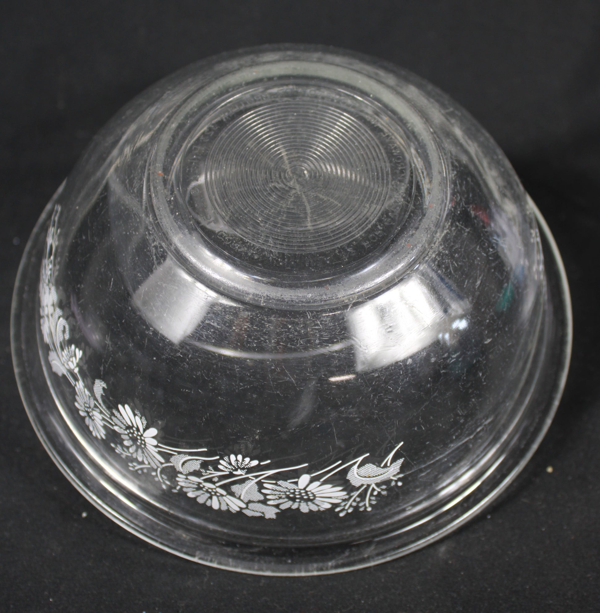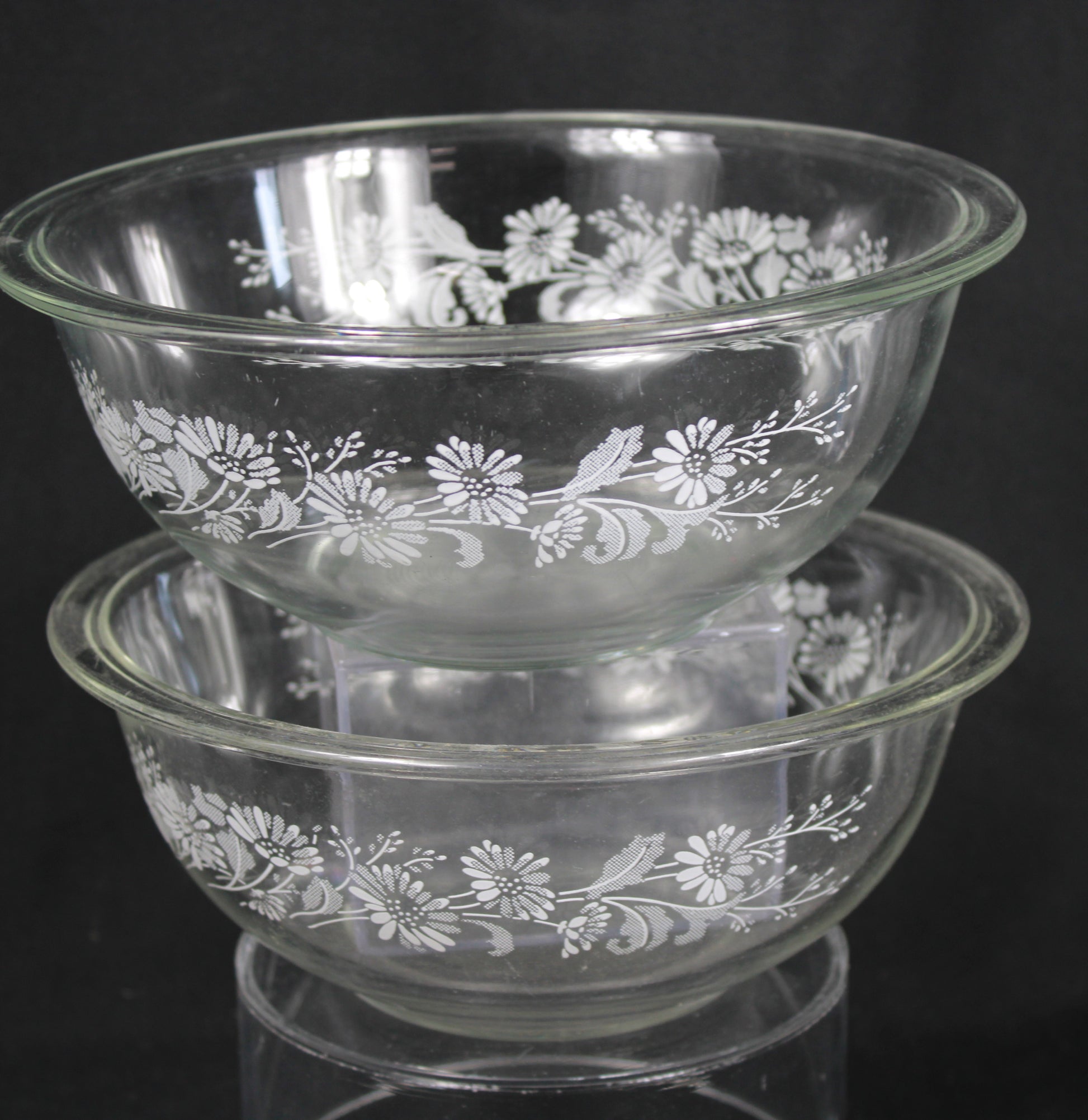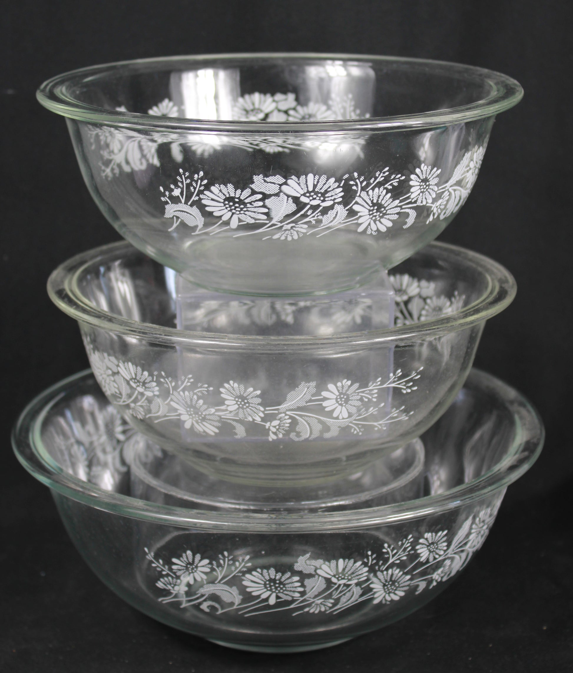 Pyrex Colonial Mist White Lace Clear Glass Mixing Bowl Set of 3