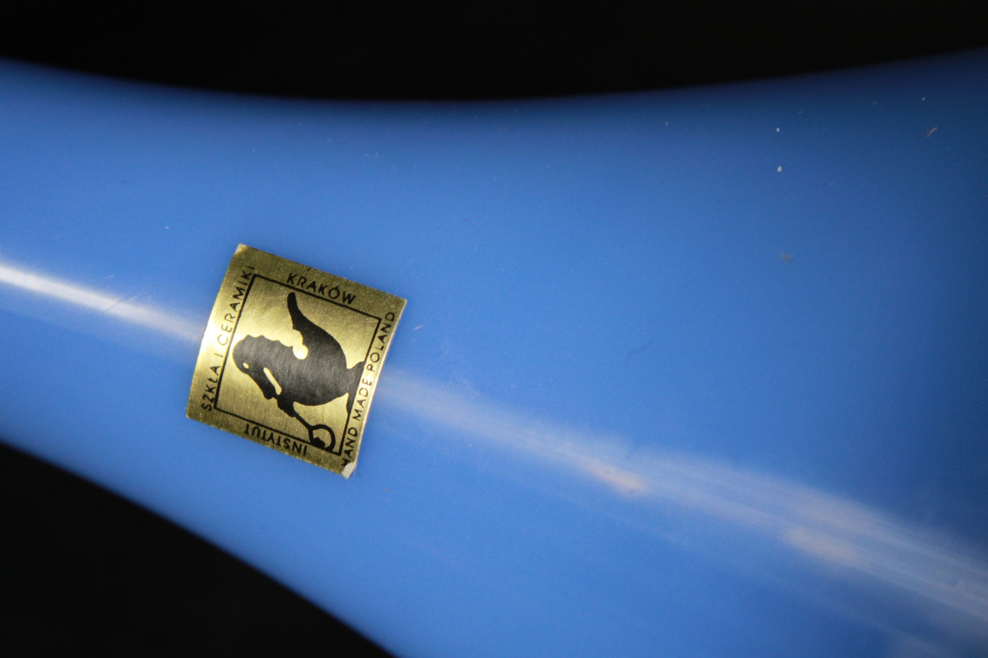 Krakow Institute of Glass Blue Opaline Pedestal Bowl Handmade in Poland