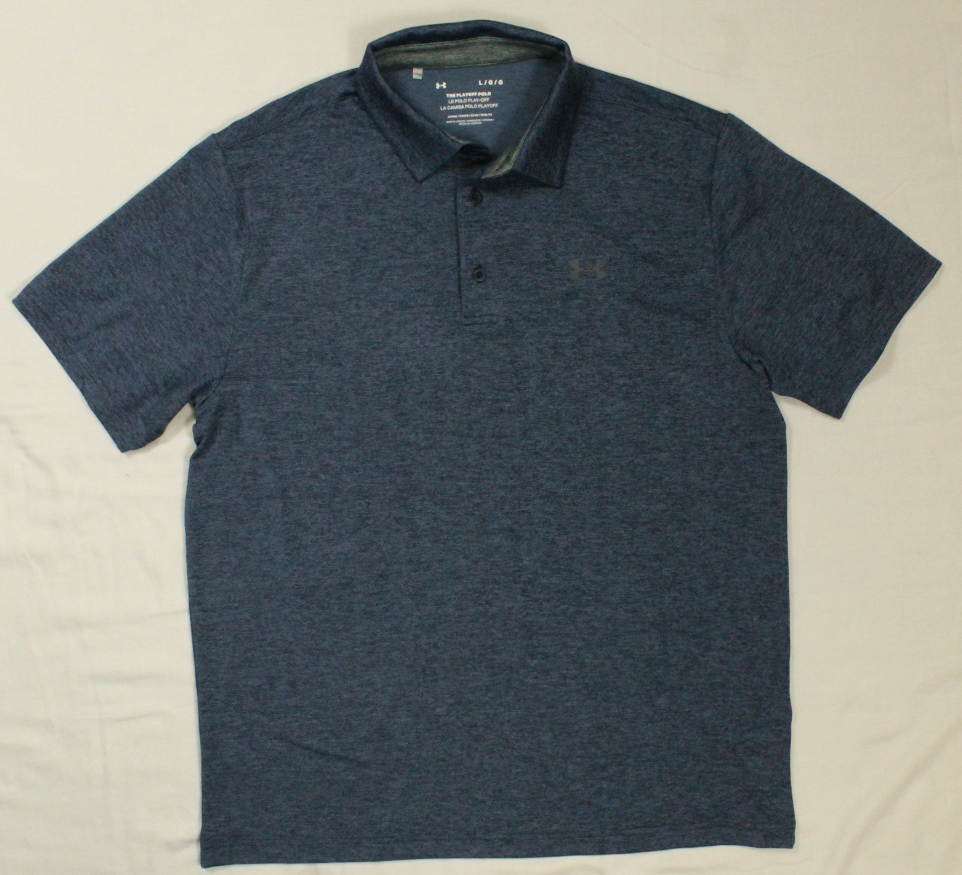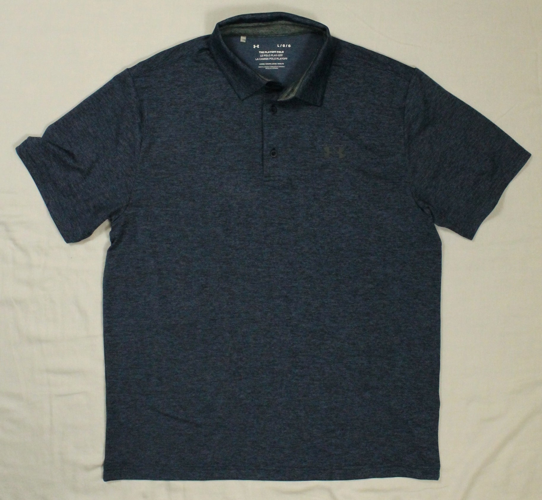 Play it cool in this Under Armour navy heathered polo, The Playoff Polo style, size Large.