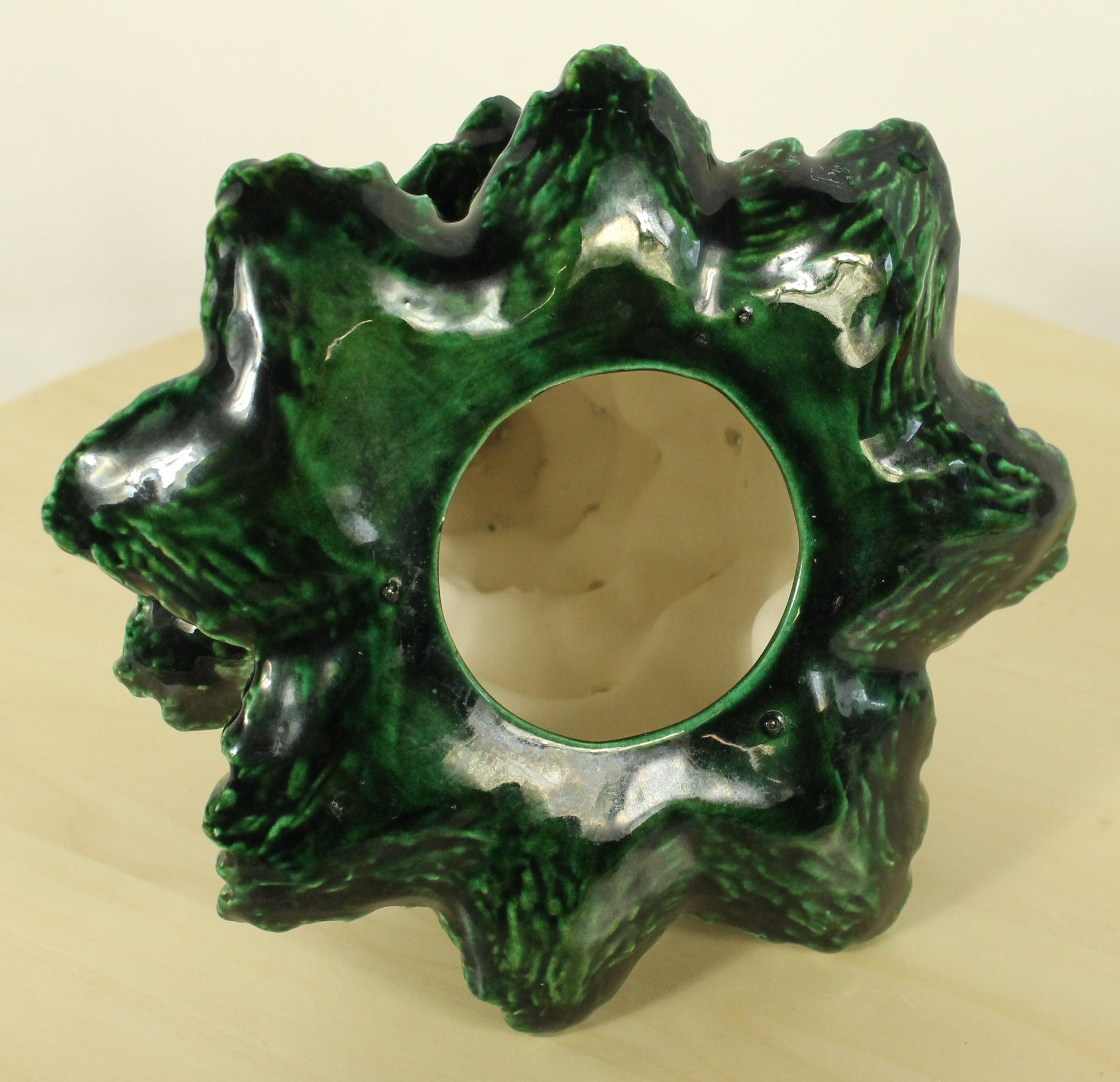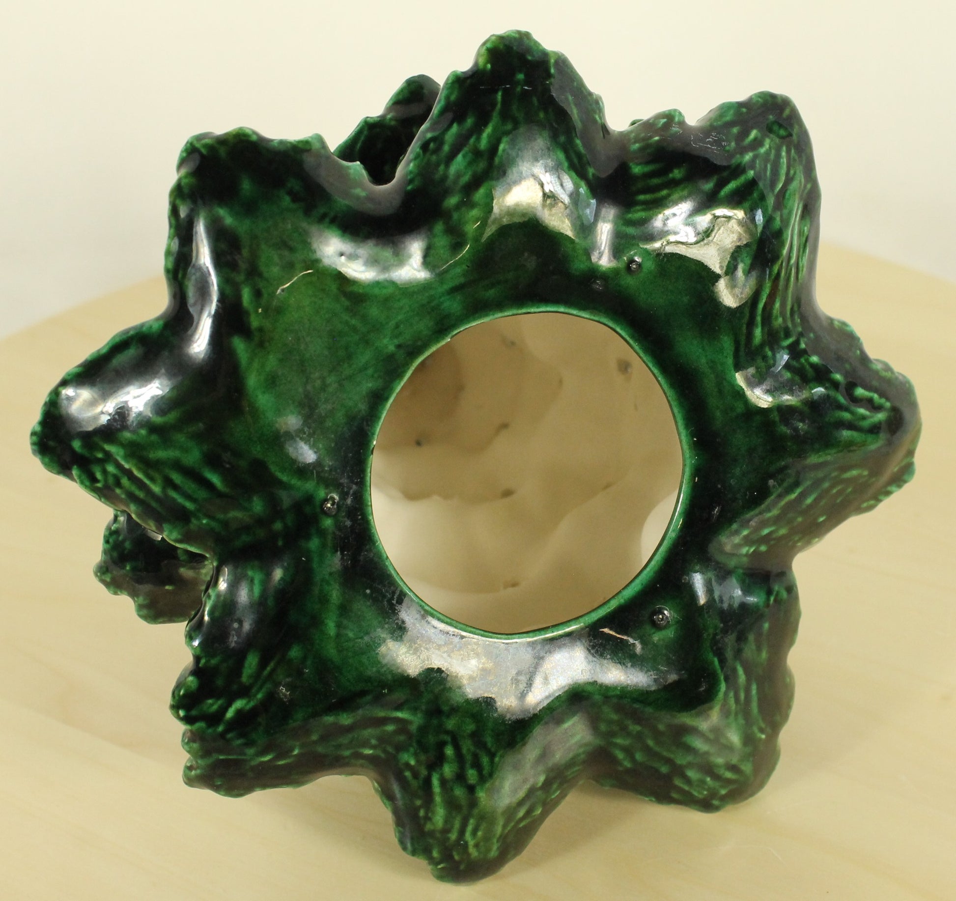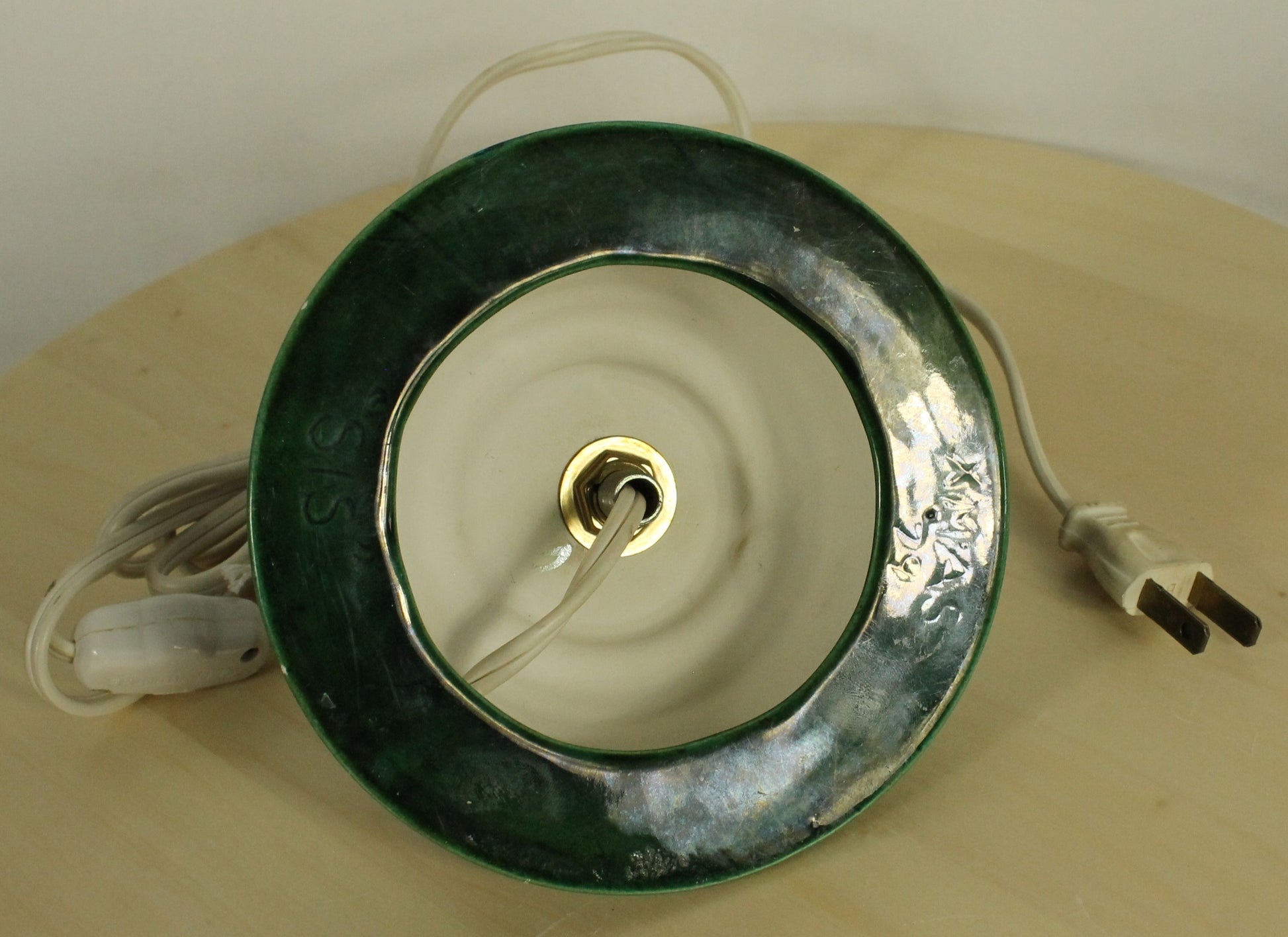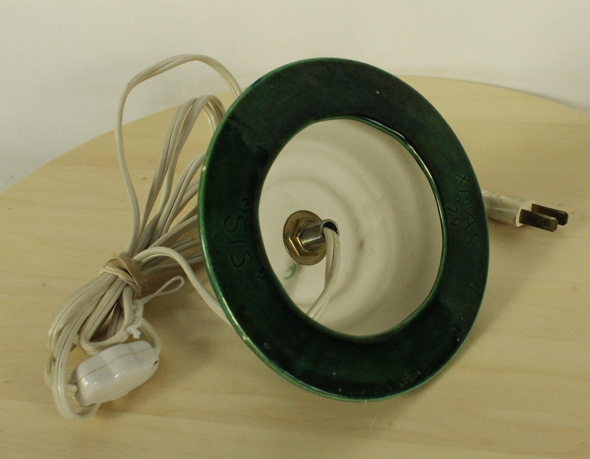This is a charming piece of handmade holiday history: a vintage ceramic Christmas tree bearing the personalized inscription "Sis" and "Xmas '79" on the base, dating it to 1979. Measuring 9.5 inches tall and 6.5 inches wide, the tree is missing its plastic bulbs, but the light shines beautifully through the apertures for a simple, nostalgic glow. The original wiring is functional, however, we recommend professional inspection and rewiring for modern safety standards if you plan on regular use. This unique piece makes a delightful, sentimental gift or a rare addition for any collector of dated mid-century Christmas decor.