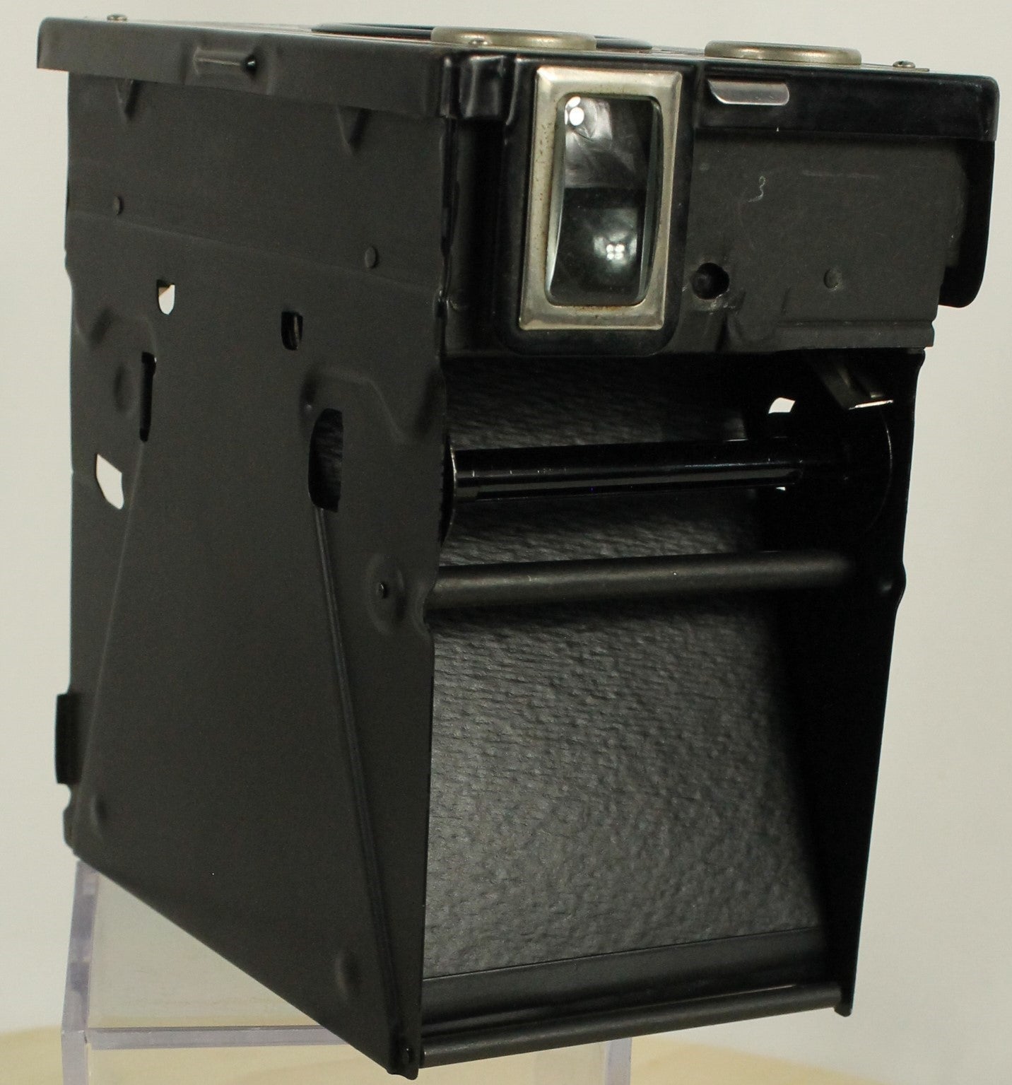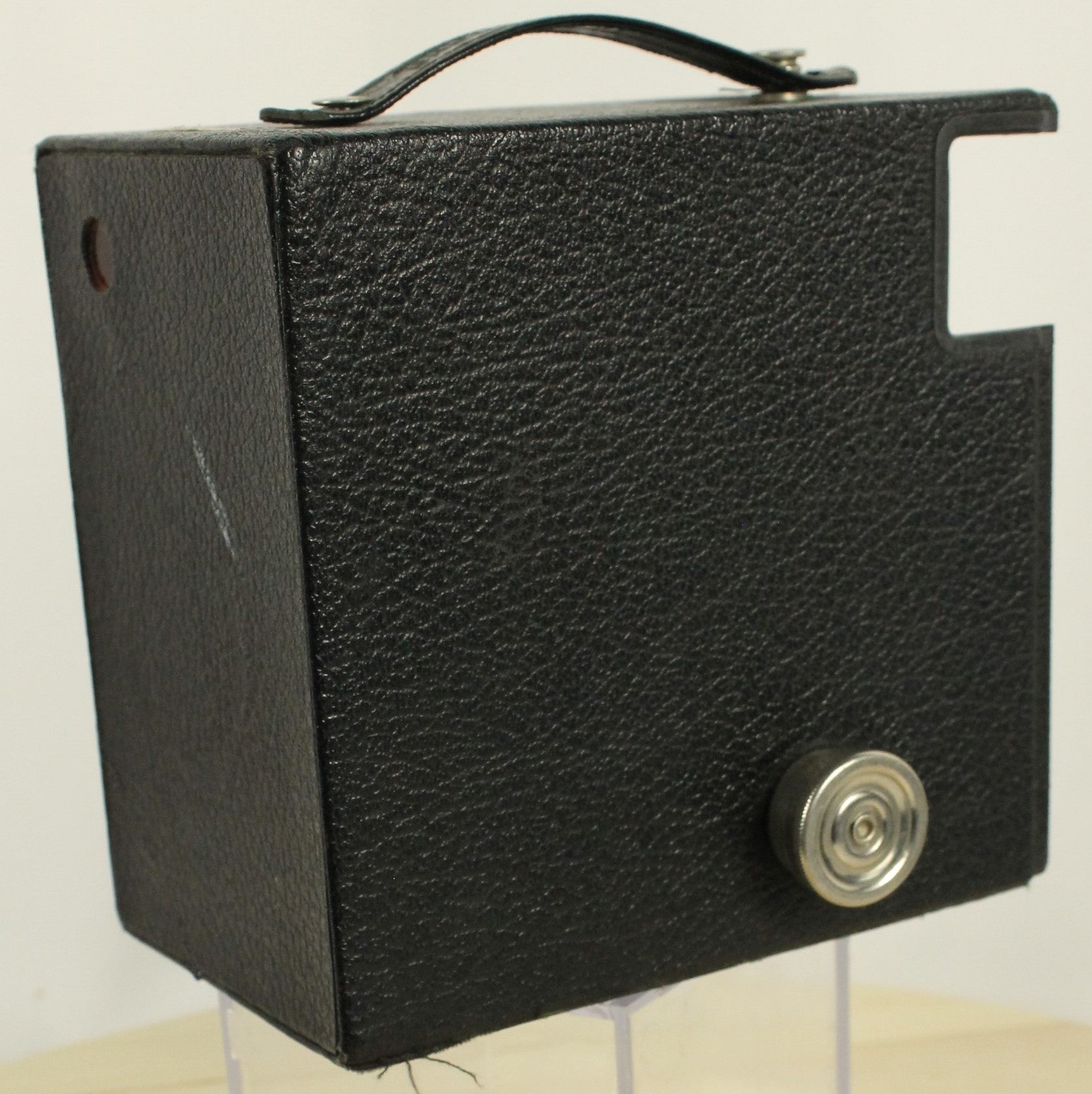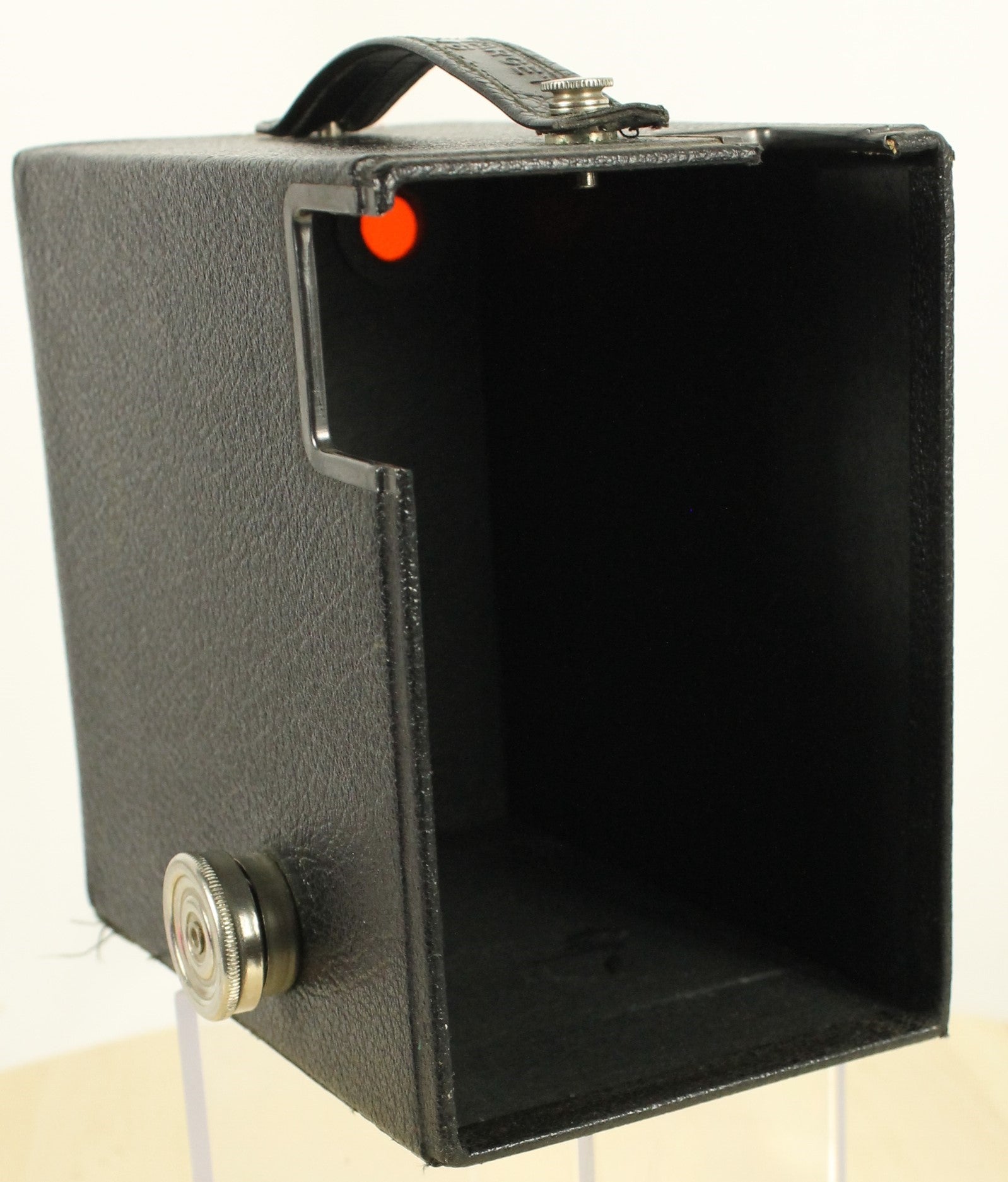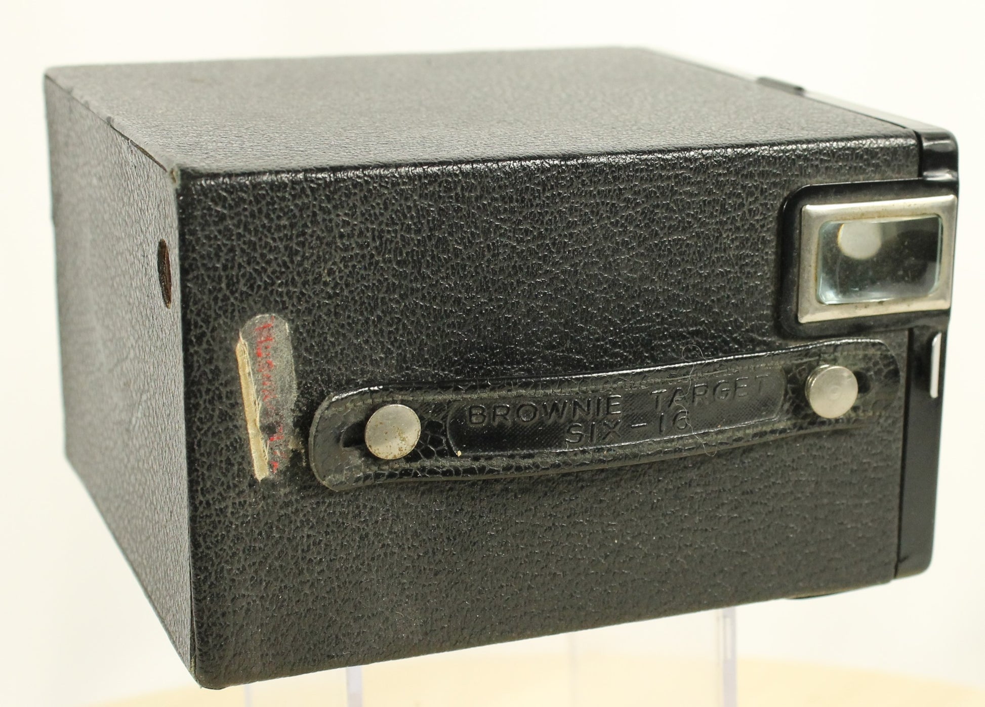 A classic piece of mid-century photography history, this is the Kodak Brownie Target Six-16 box camera. Known for its streamlined Art Deco-inspired design and rugged construction, it was designed to use the now-discontinued 616 film format. Features a built-in viewfinder and the iconic 'Brownie' styling. The camera is being sold as a vintage collectible for display or restoration purposes. Note: Due to its age, this camera has not been tested and is being sold in as-is condition. A great addition to any camera collection!